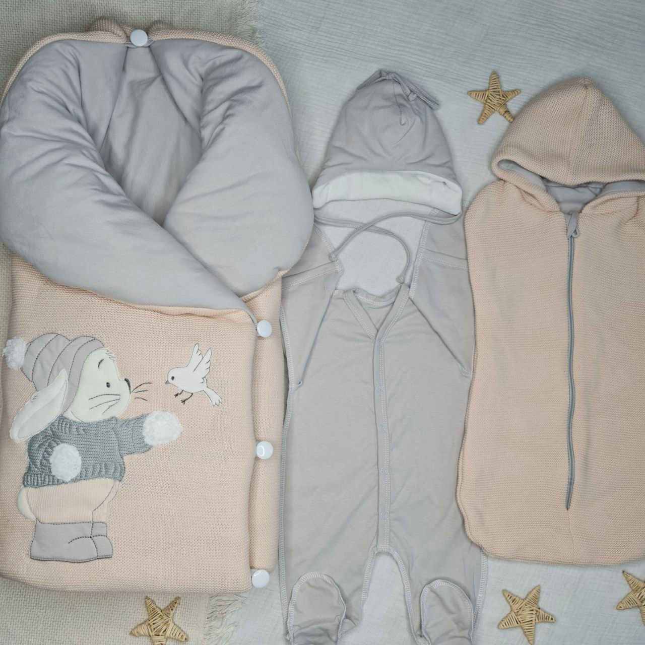 Комплект на выписку из вязанного полотна, внутри трикотажный хлопок.
