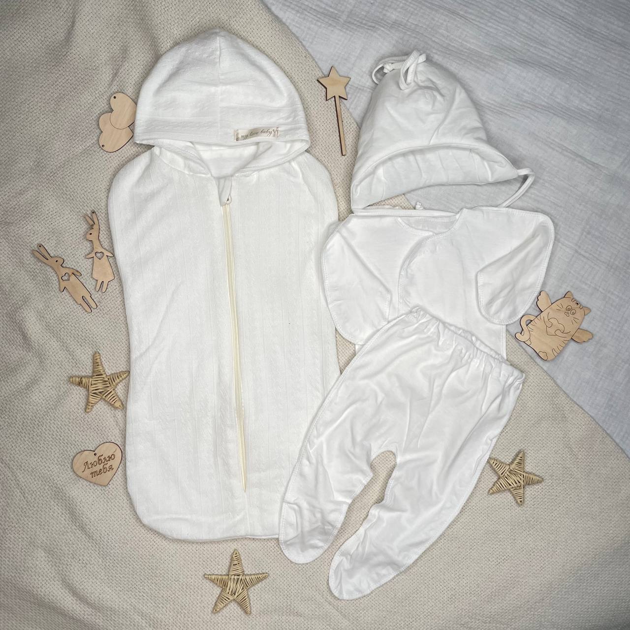 Белоснежный комплект на выписку с кружевом и шикарным бантом