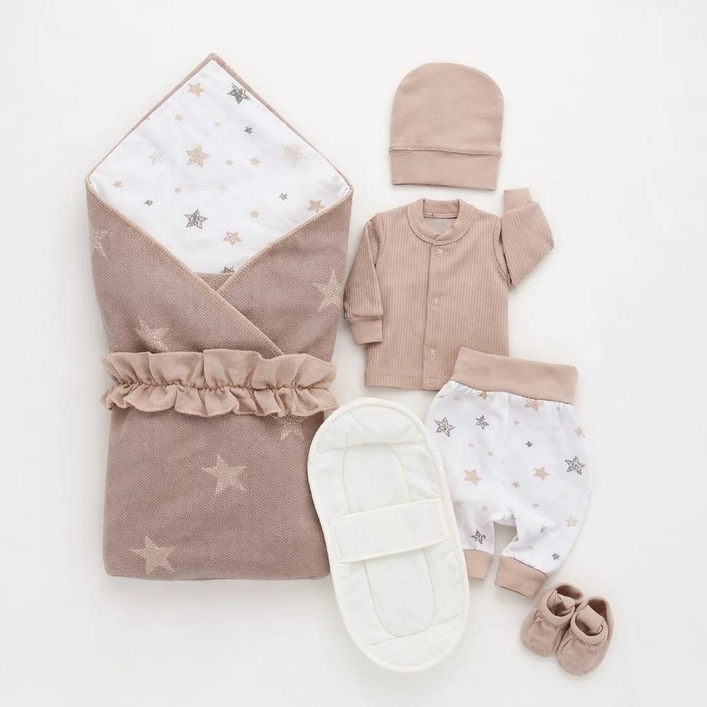 Перед первым использованием вся нательная детская одежда первого слоя для новорожденных требует стирки. Нельзя использовать содержащий хлор отбеливатель. Рекомендуется стирка при t 30-40°С жидкими моющими средствами. Конверту необходим бережный отжим, сушка в расправленном вид, сухая глажка (без пара) на низкой температуре со стороны подклада.