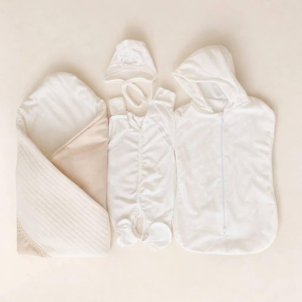 Перед первым использованием вся нательная детская одежда первого слоя для новорожденных требует стирки. Нельзя использовать содержащий хлор отбеливатель. Рекомендуется стирка при t 30-40°С жидкими моющими средствами. Конверту необходим бережный отжим, сушка в расправленном вид, сухая глажка (без пара) на низкой температуре со стороны подклада.