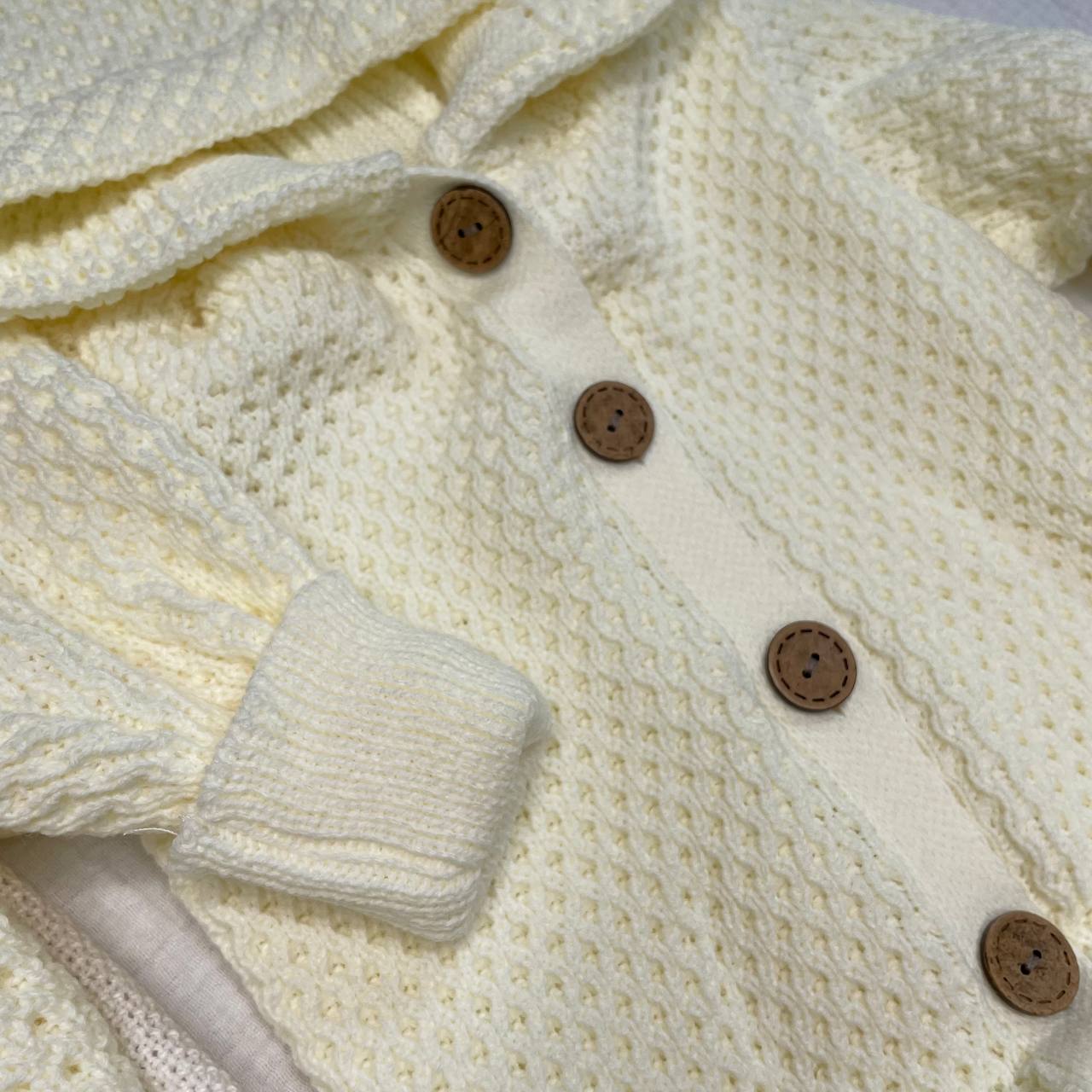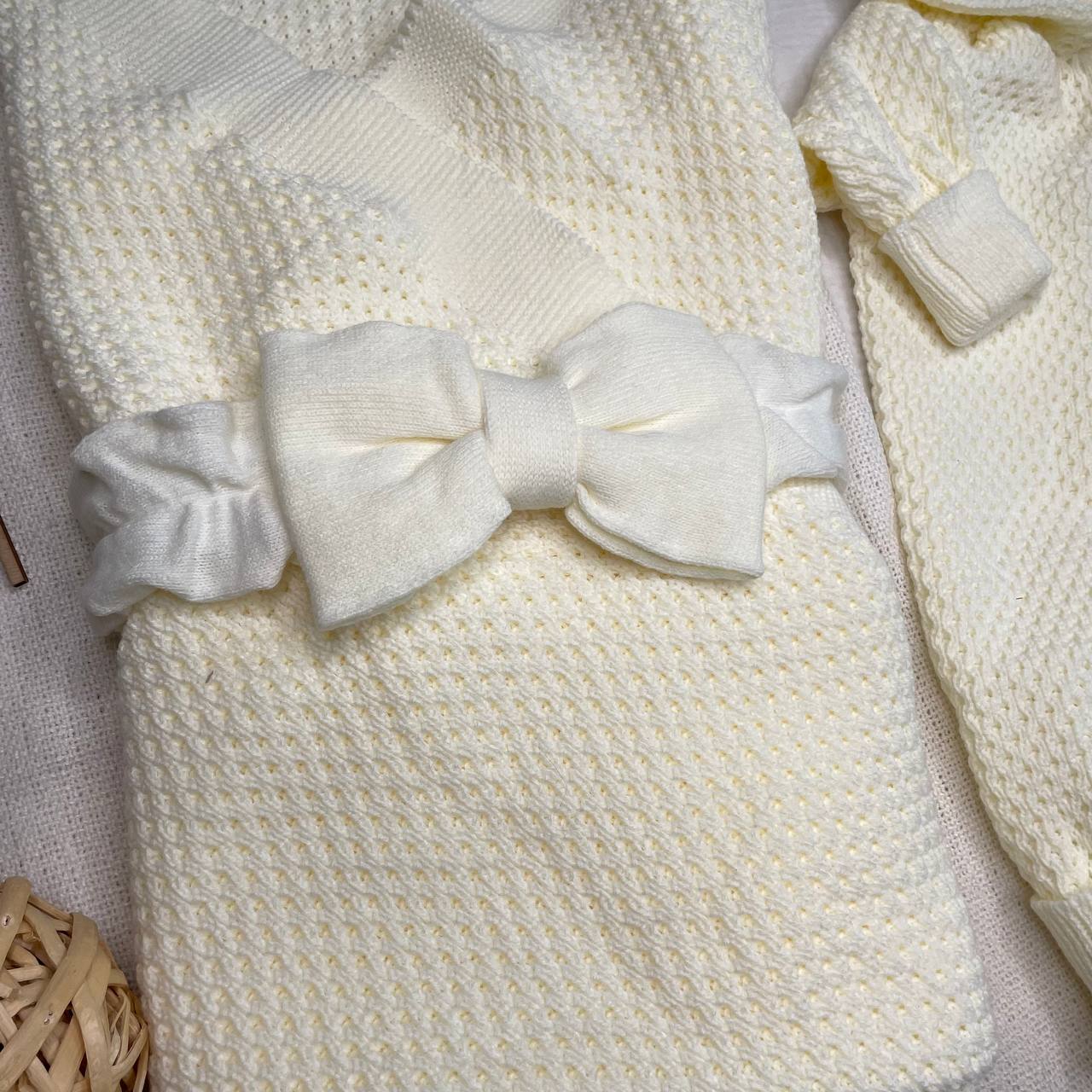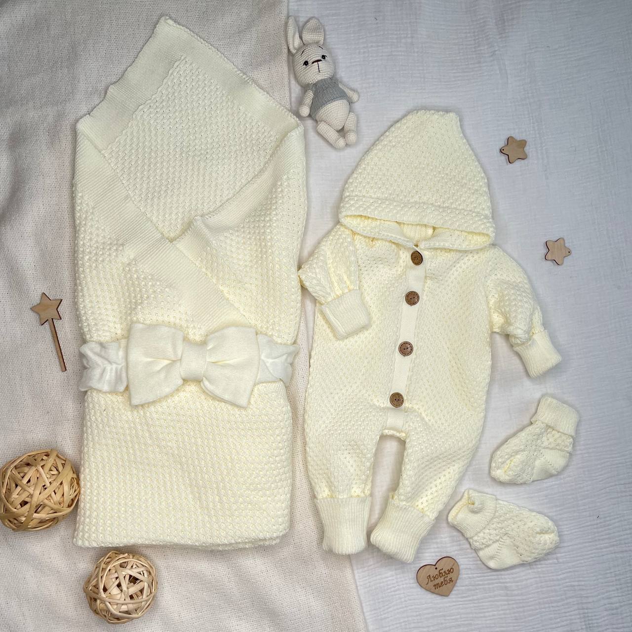 КВ-102 Вязаный комплект на выписку в молочном цвете. Упакован в тубус.