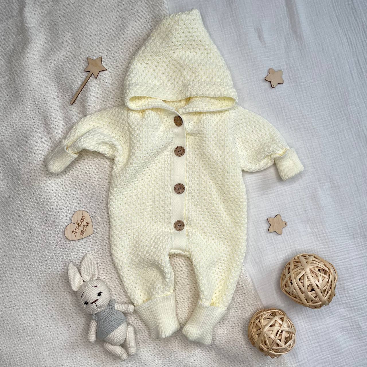 2.Комбинезон вязаный с капюшоном . р-р 56/62. Растущие манжеты.
