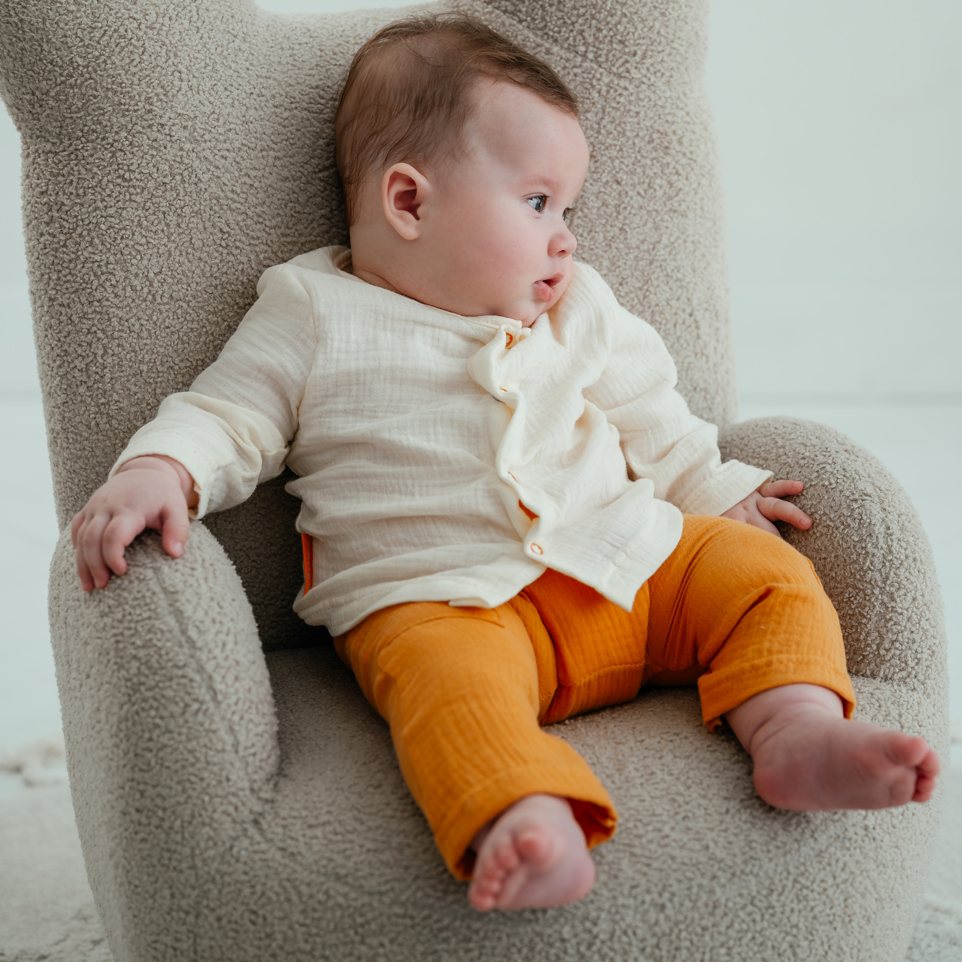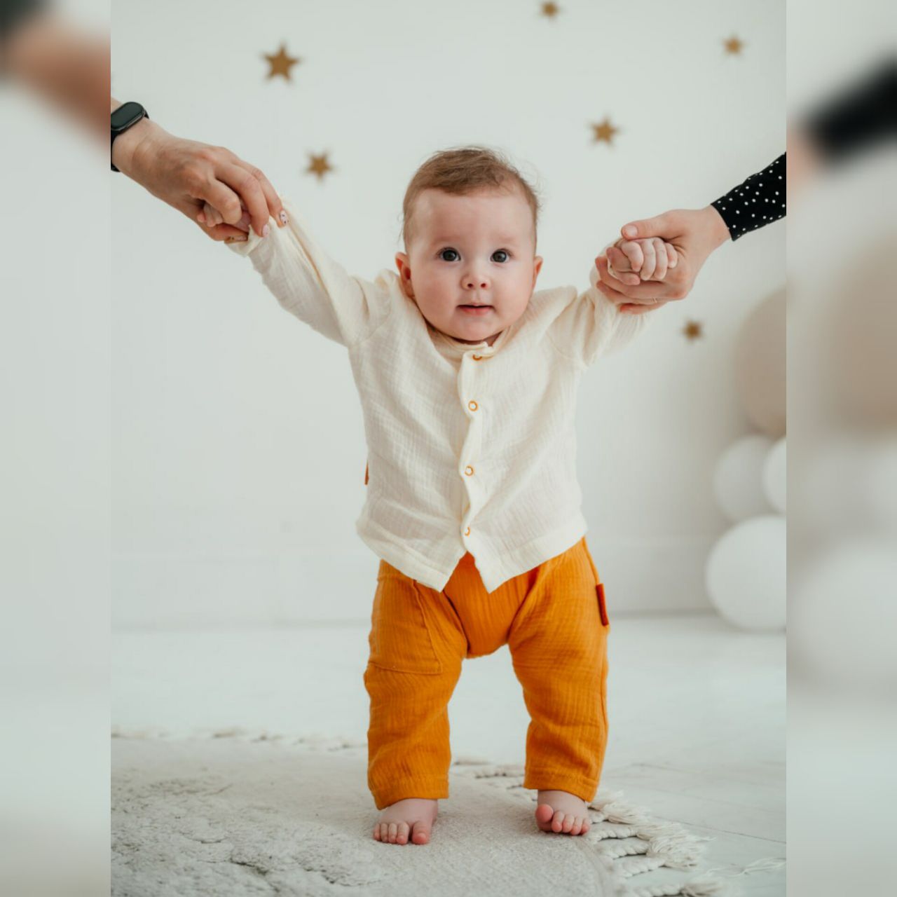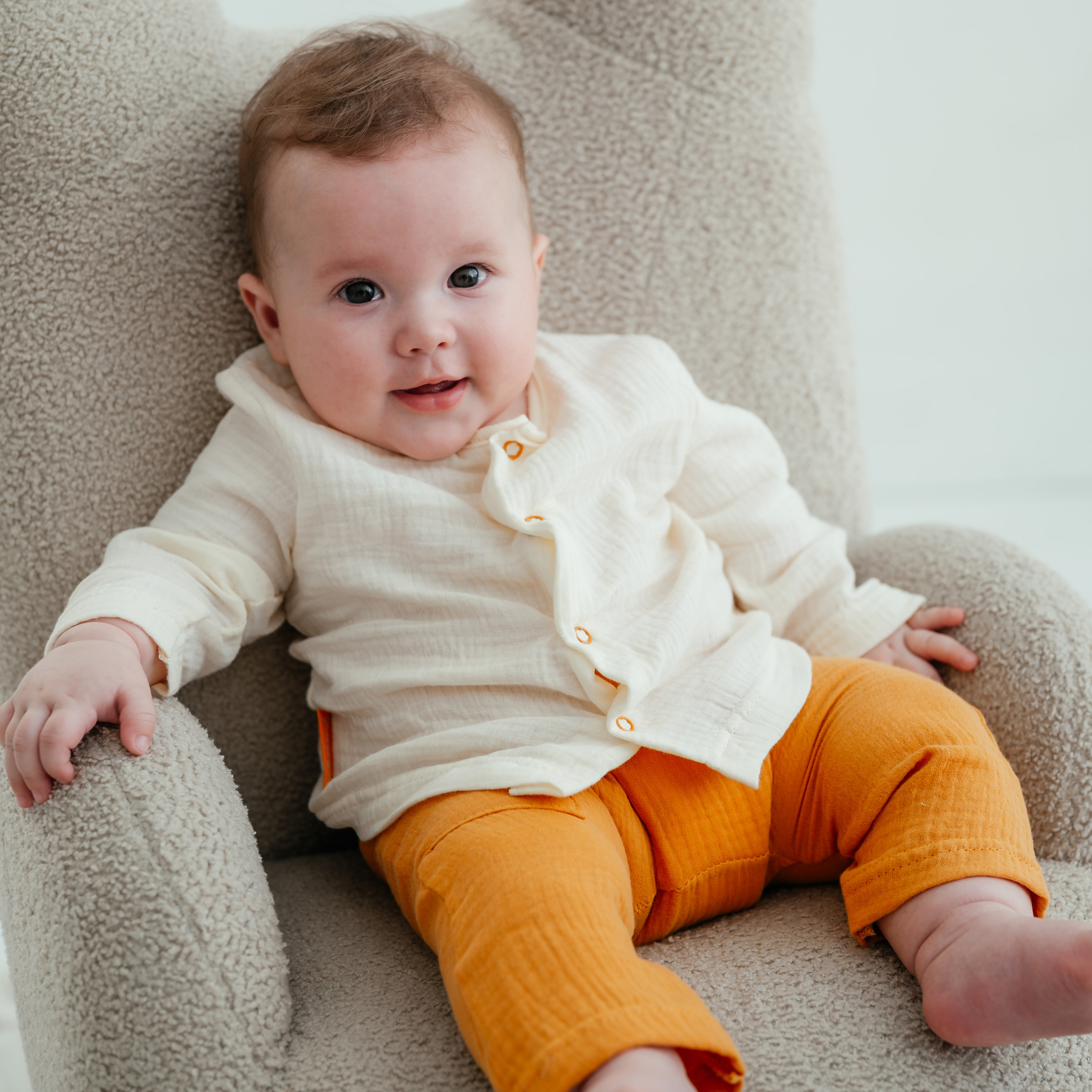 Легкий и комфортный костюм для летнего сезона и не только. Подойдет для повседневного использования в жаркое время года. Рубашка на кнопках. На штанах имеется карман. Штаны и рукава на рубашечке можно подвернуть по комфортной длине.