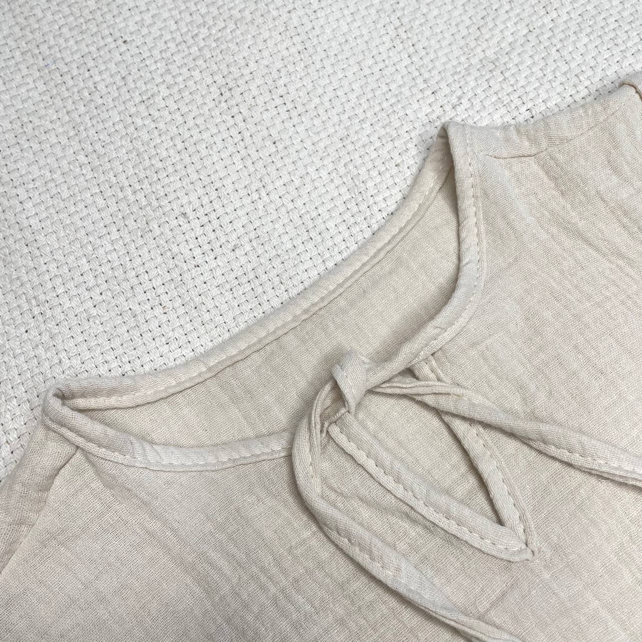 Кофточка с широкой горловиной на завязках. Короткий рукав.