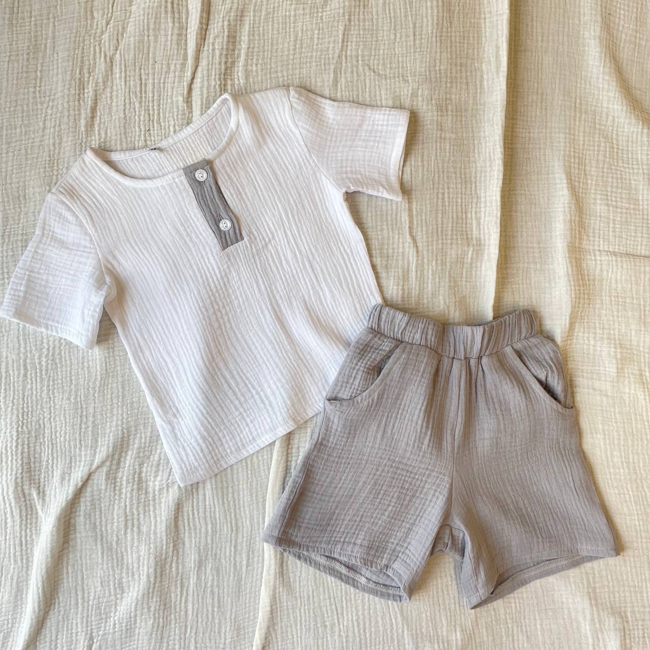 Костюм детский муслиновый с шортами для мальчиков создан из качественного муслина, который является дышащей тканью и не нагревается на солнце, что позволяет чувствовать себя комфортно в жаркую погоду.