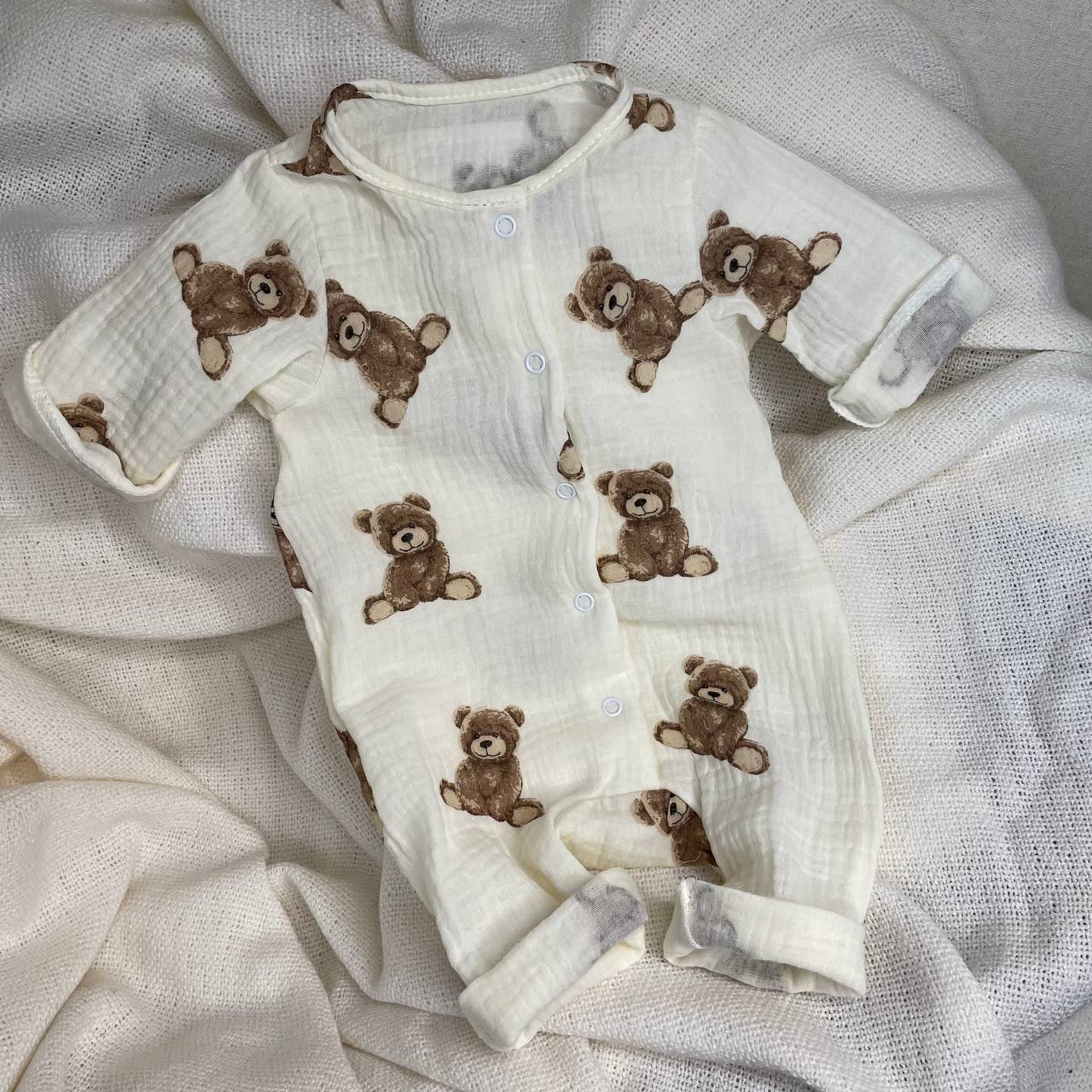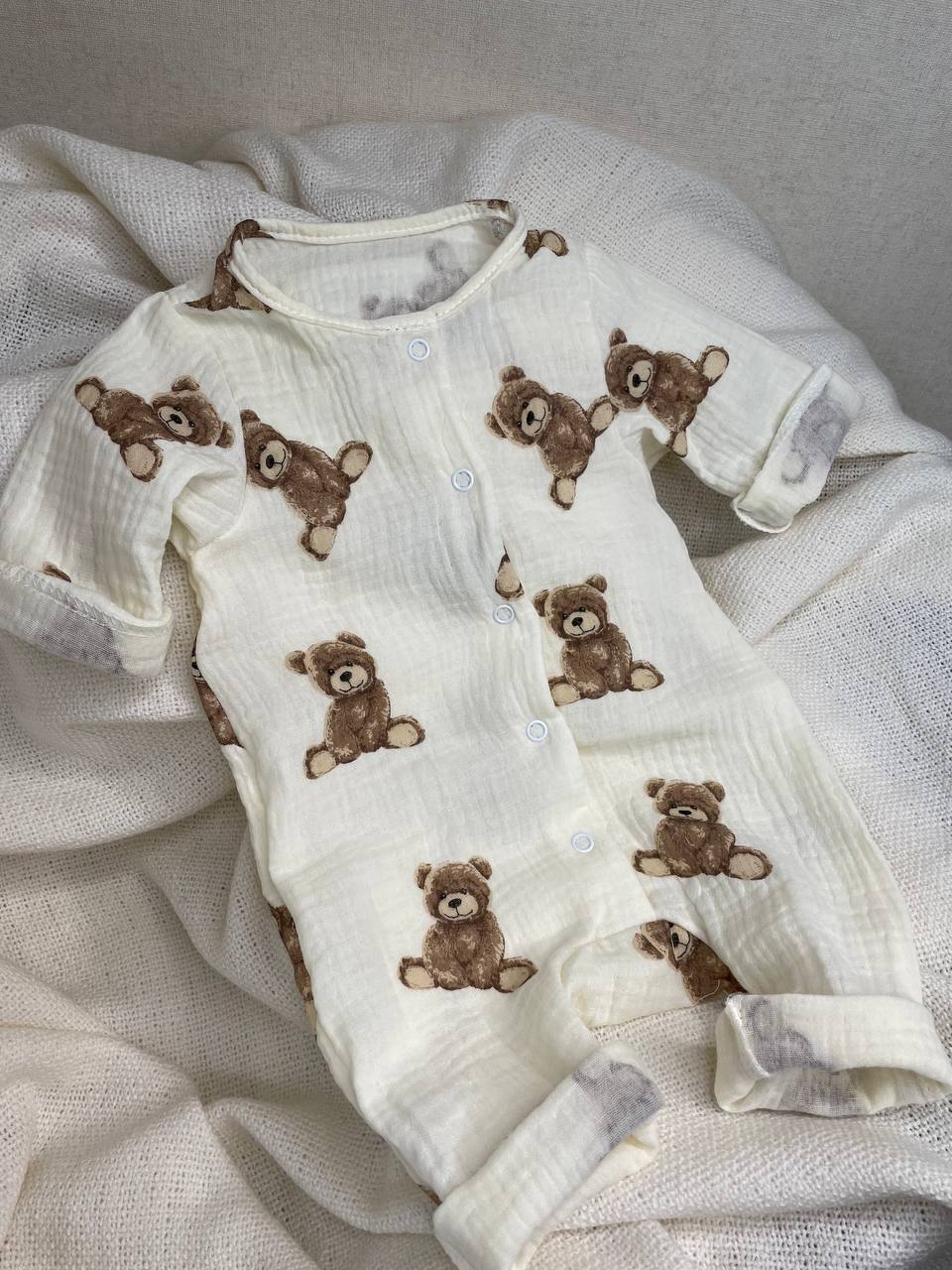 Одежда из муслина тонкая и легкая, ткань очень мягкая и приятная к телу. Муслиновый песочник для новорожденных имеет удобную застежку на кнопки спереди и округлый вырез горловины. Свободный крой делает его удобным, не сковывает движения малыша. Муслиновые изделия не теряют свои свойства после частых стирок становятся только мягче, а также позволяют поддерживать комфортную температуру тела малыша.