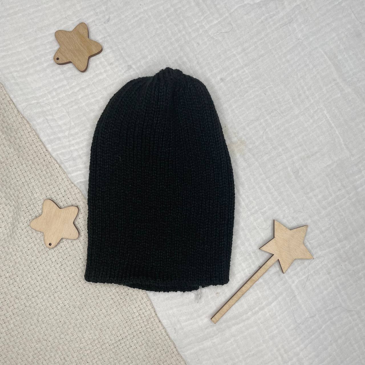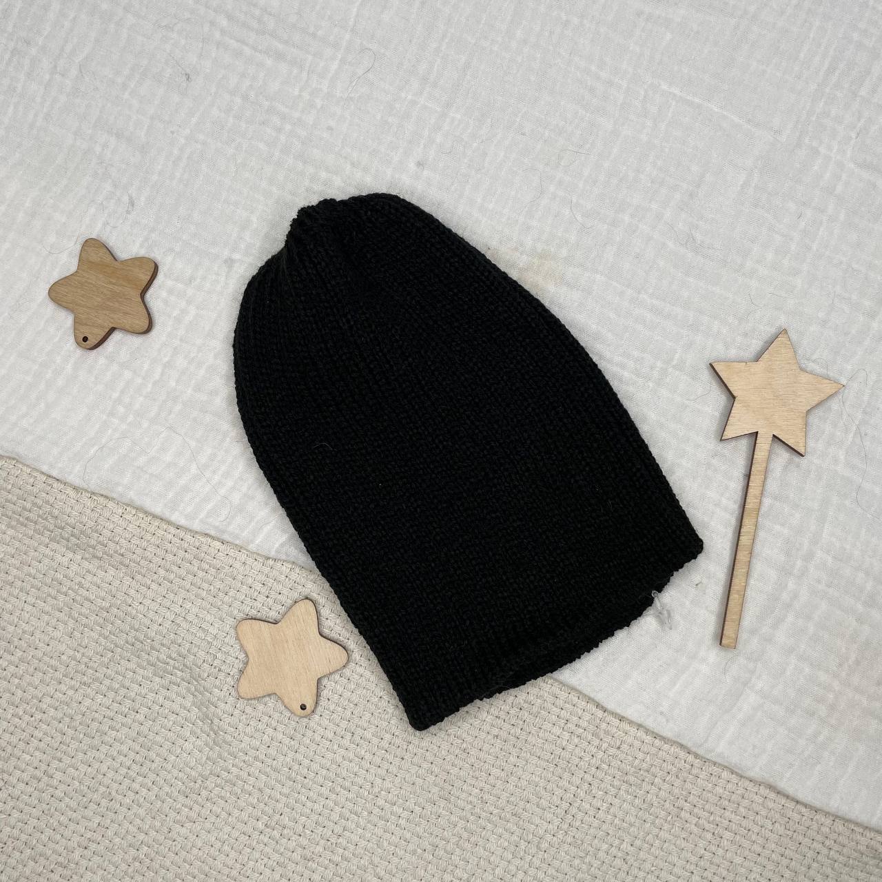 Теплая шапочка с полушерстяной нити. Удобно облегает голову малыша, модель создана в стиле "Бини".