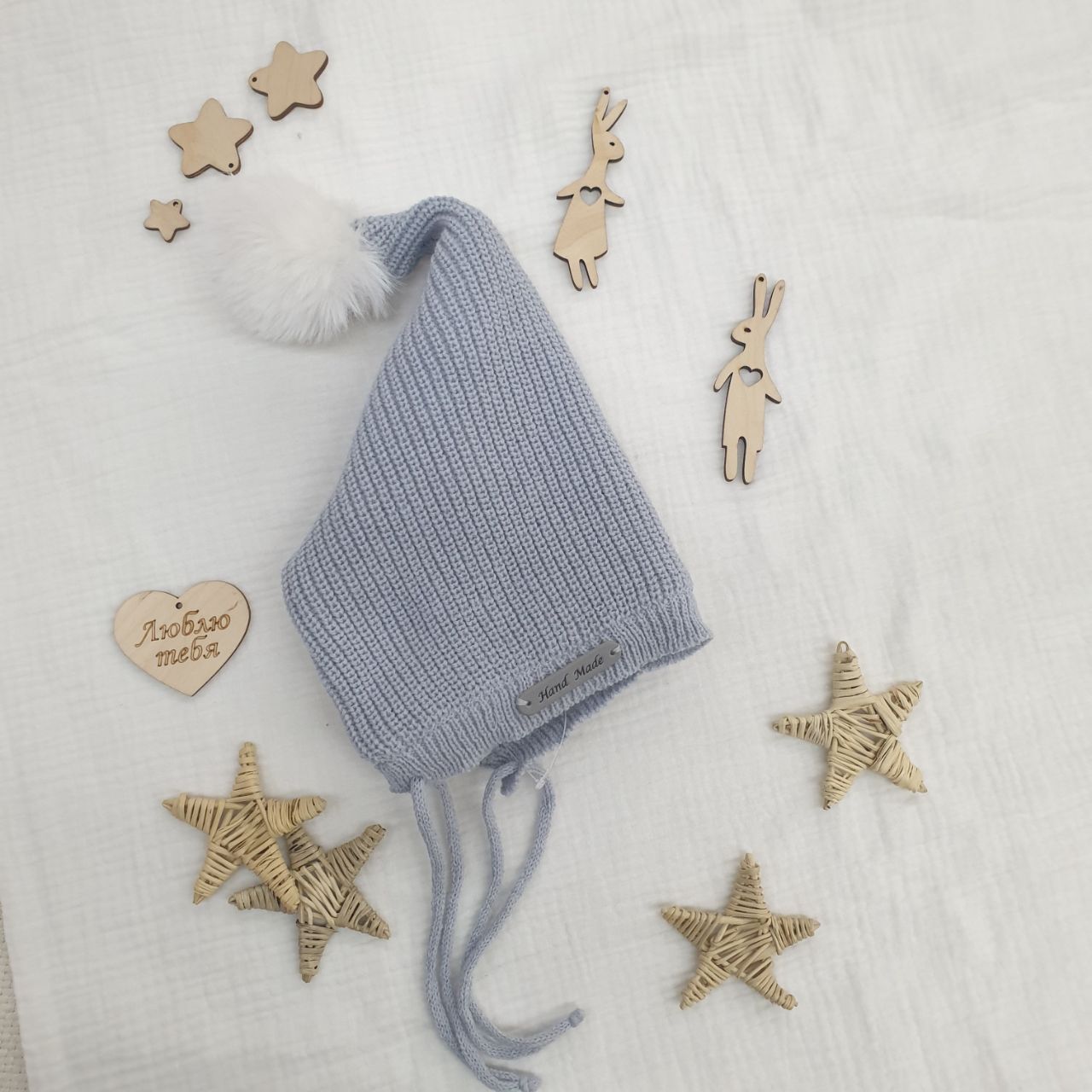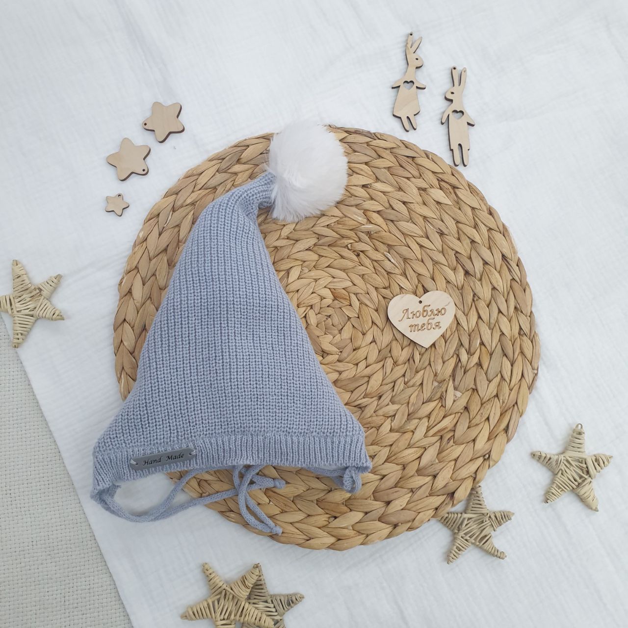 Вязанная шапочка с хлопковым подкладом на завязках.