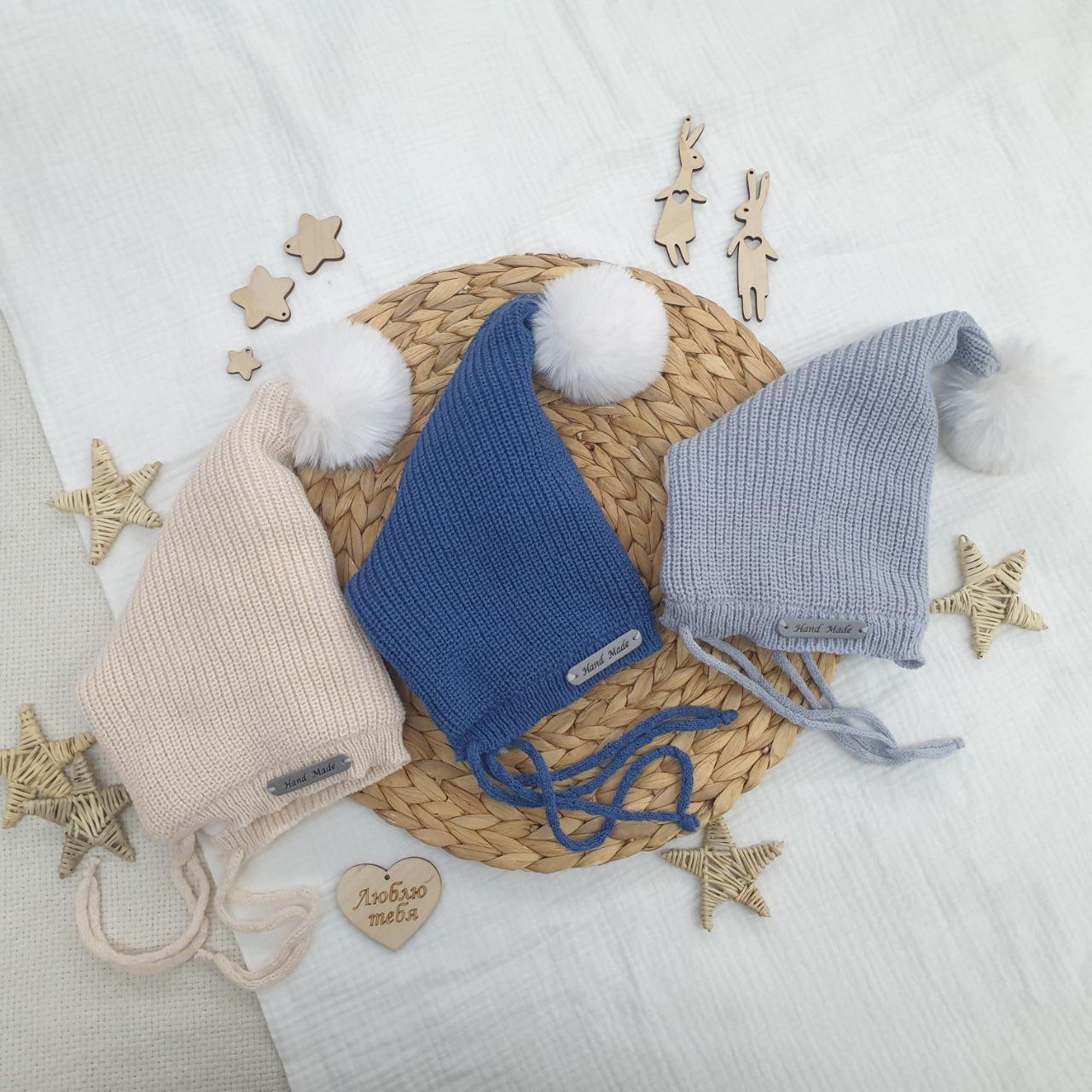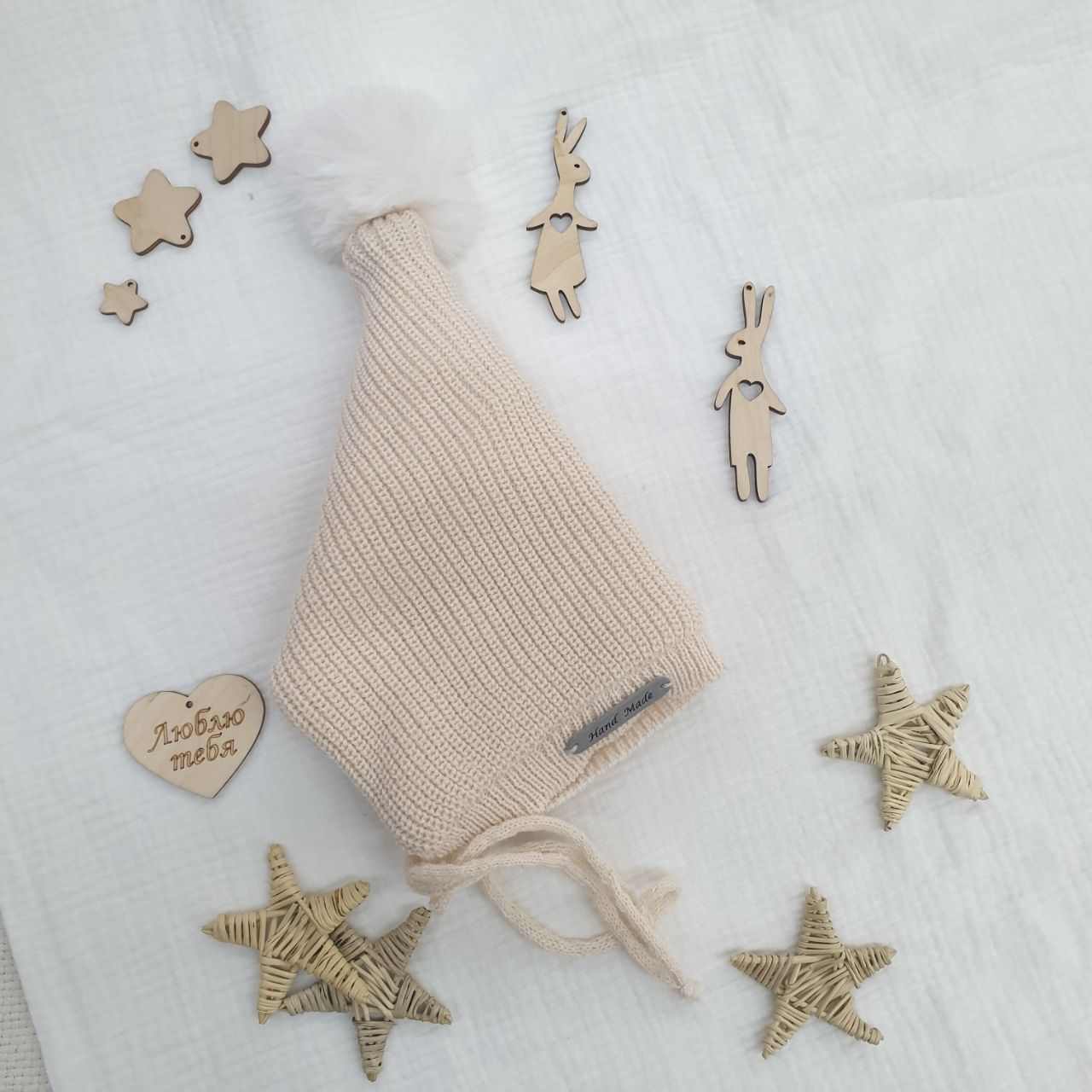 Вязанная шапочка с хлопковым подкладом на завязках.