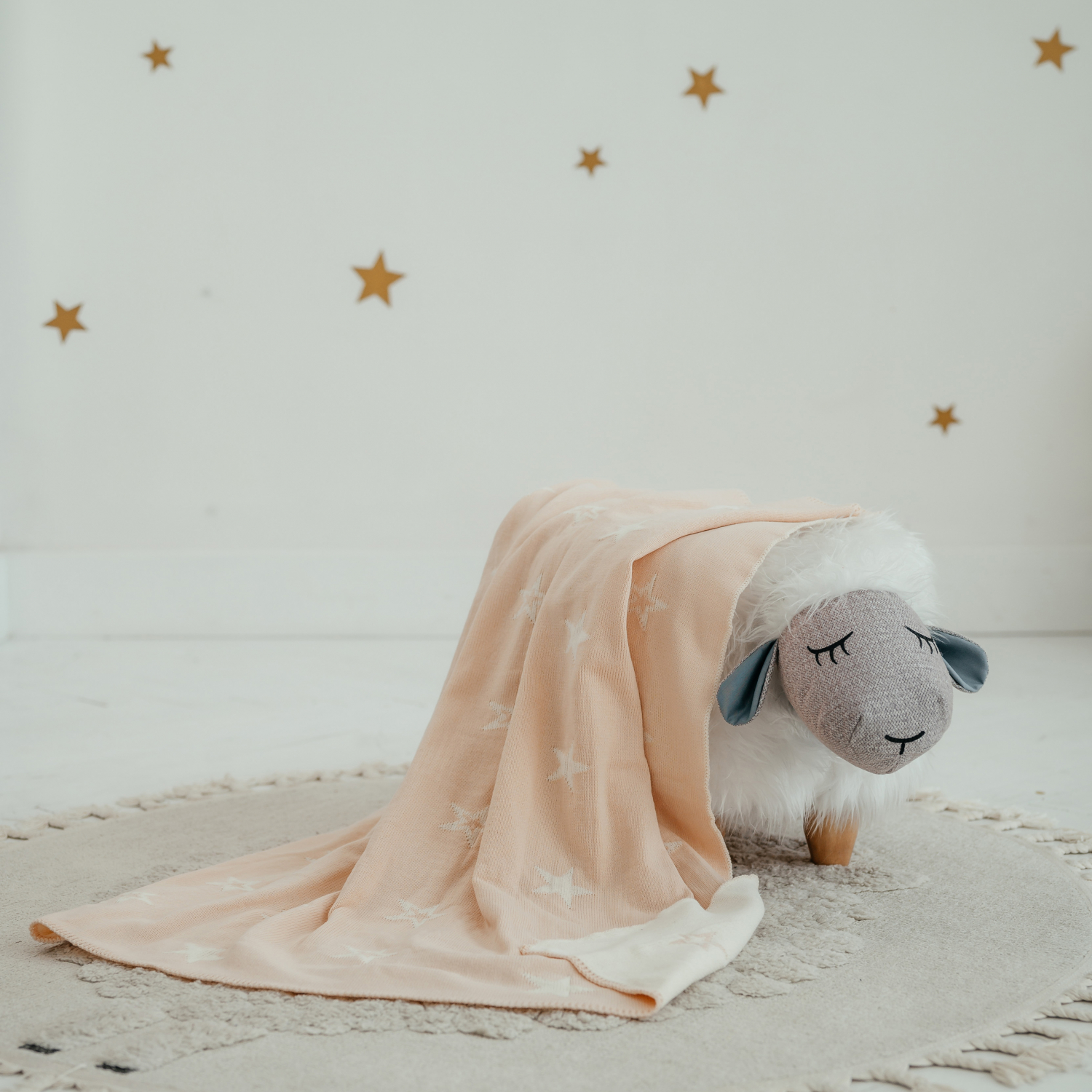 ПВ-41 Плед вязаный двухсторонний Звезда. Бежевый