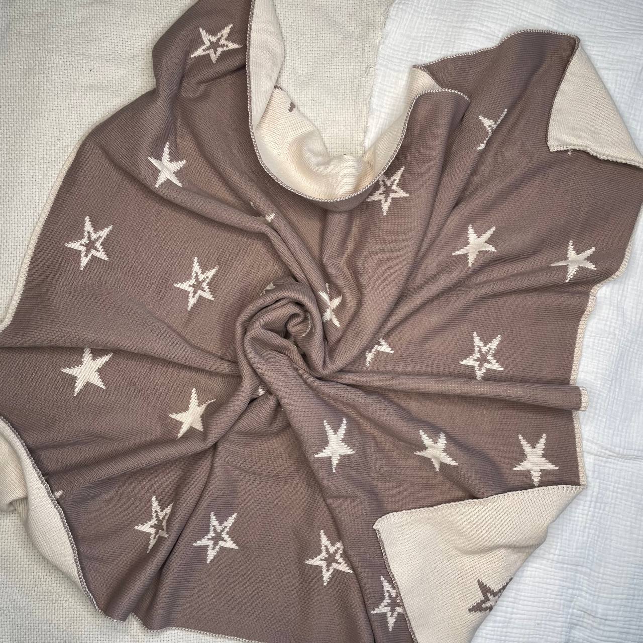 ПВ-41 Плед вязаный двухсторонний Звезда. Шоколад