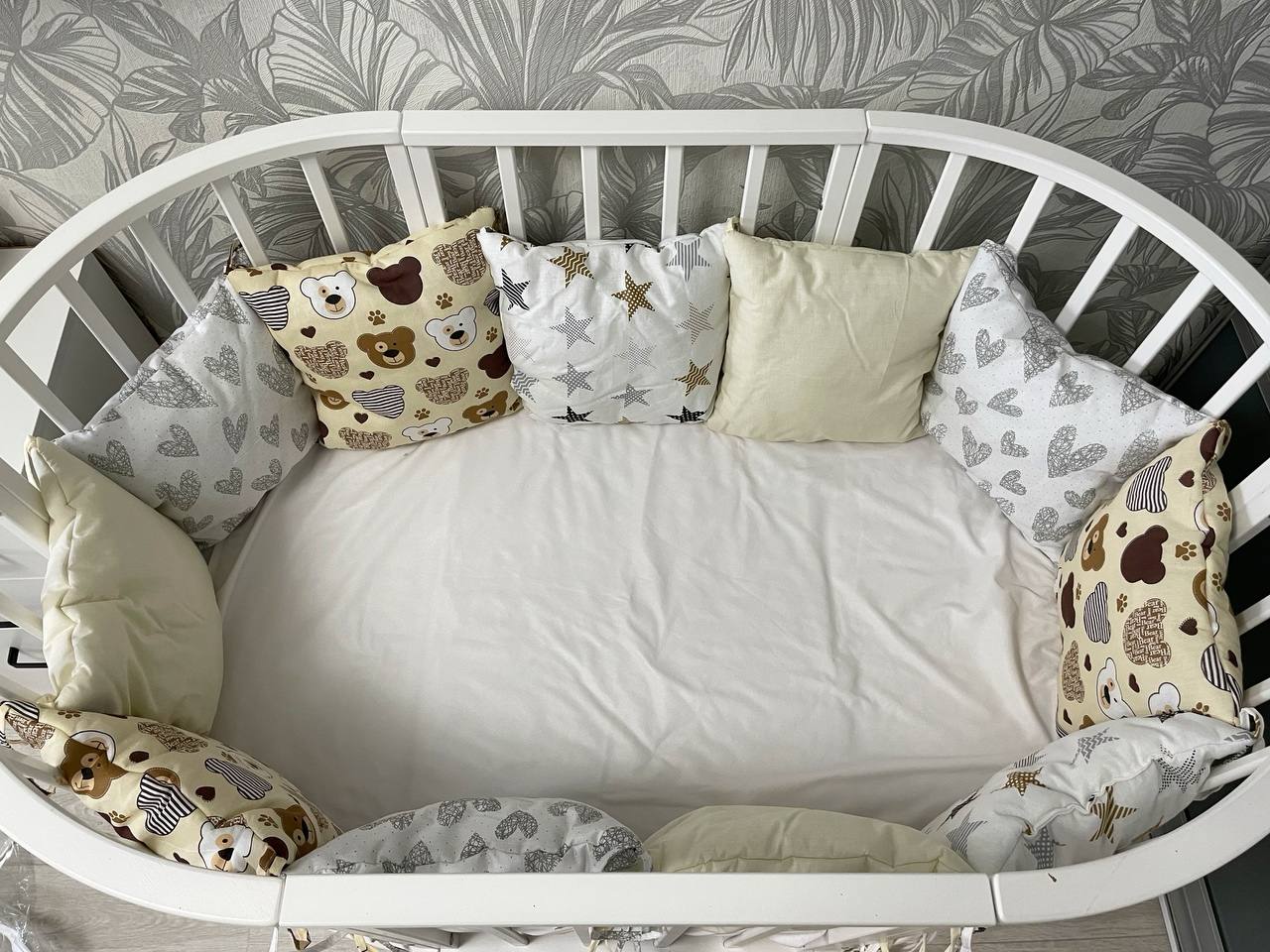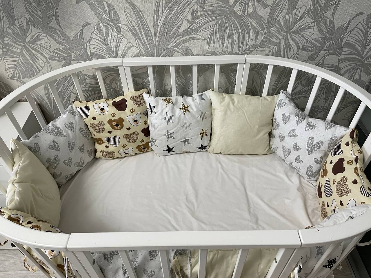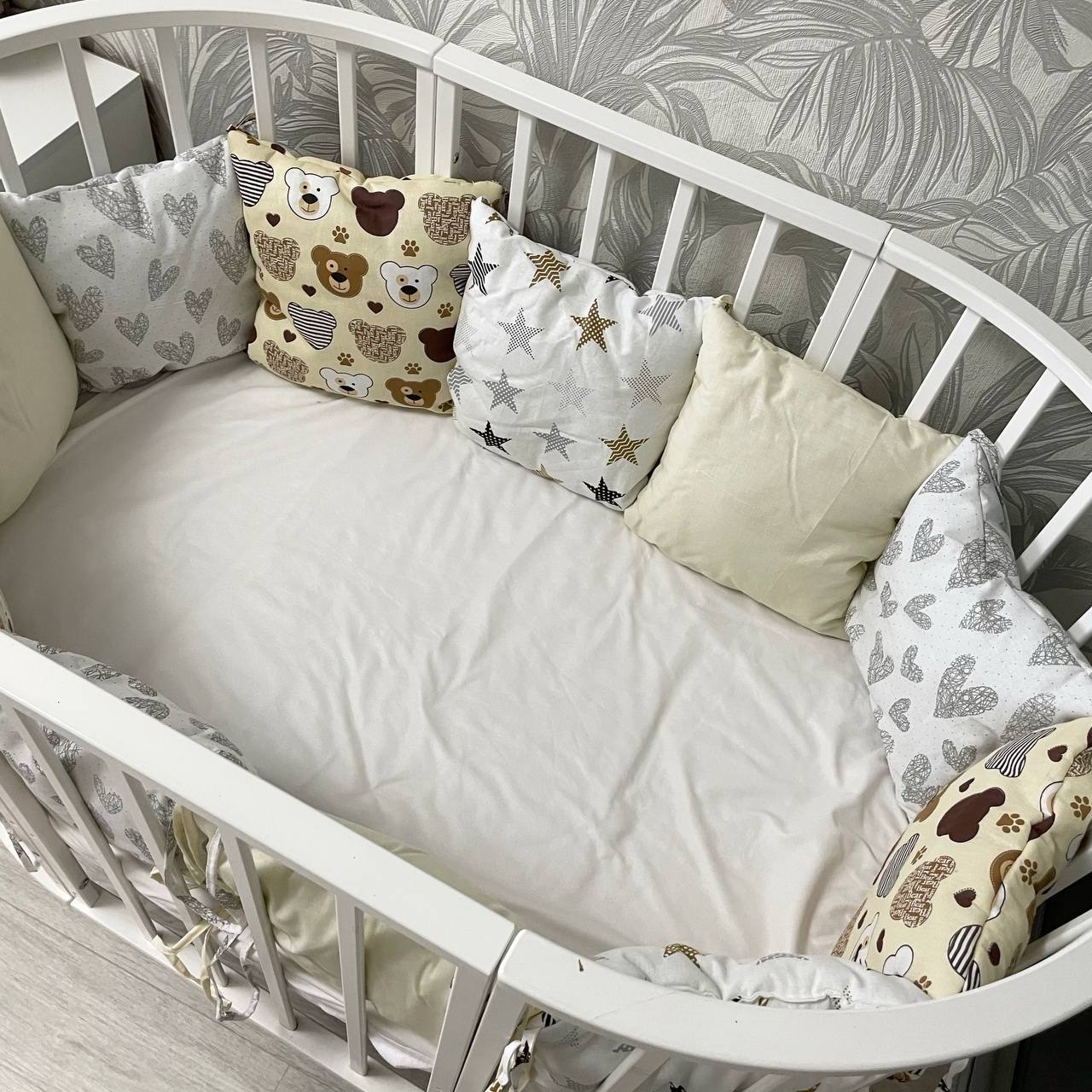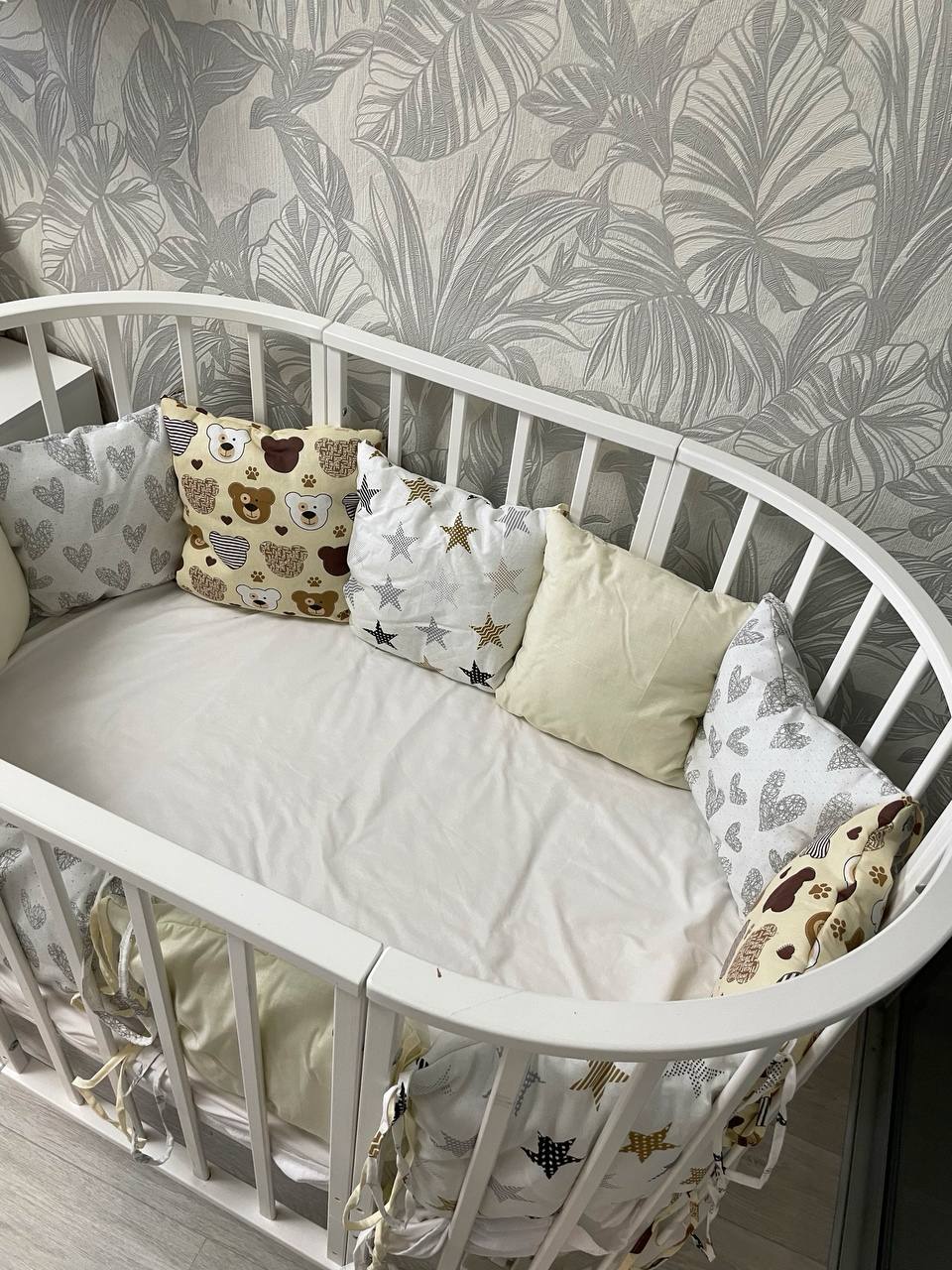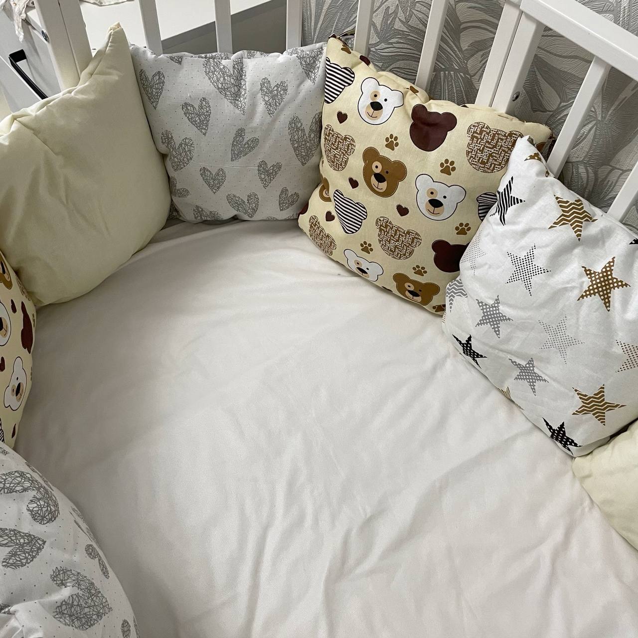 Бортики в кроватку 12 шт - модель "Подушки" предназначен для кроватки любой формы и размеров.