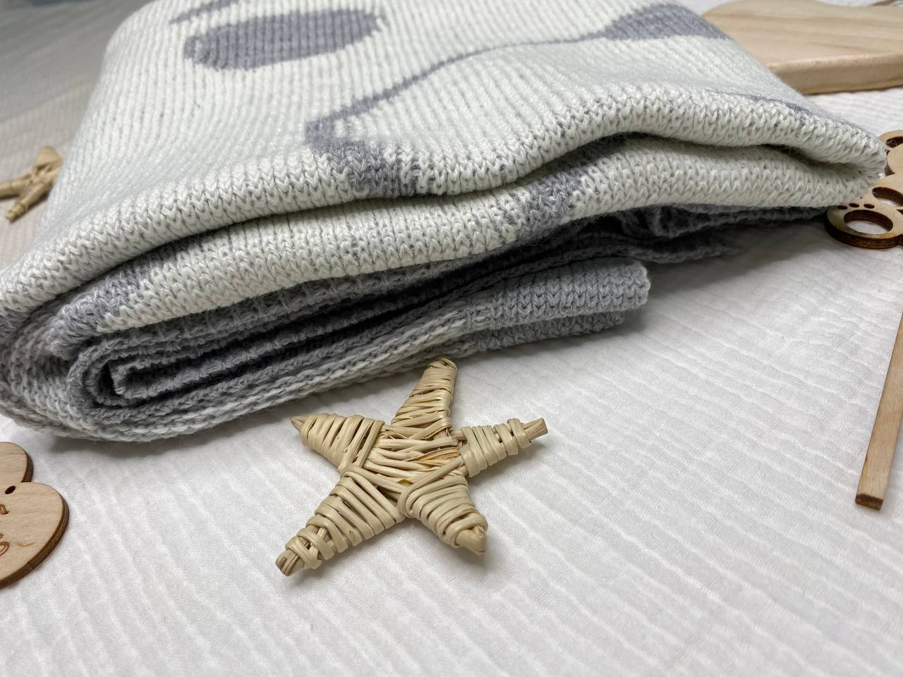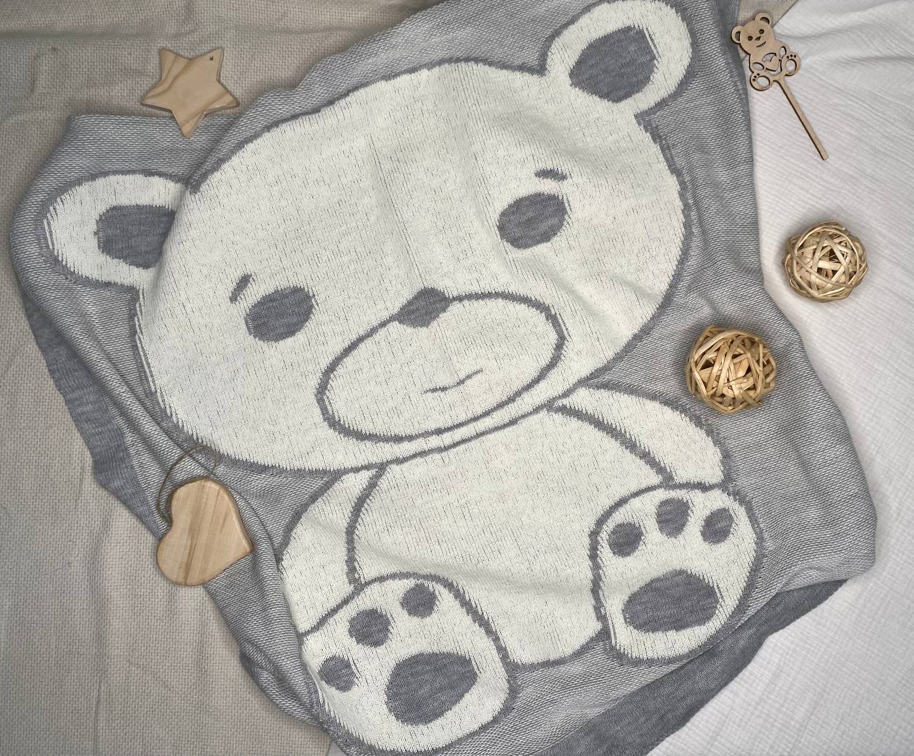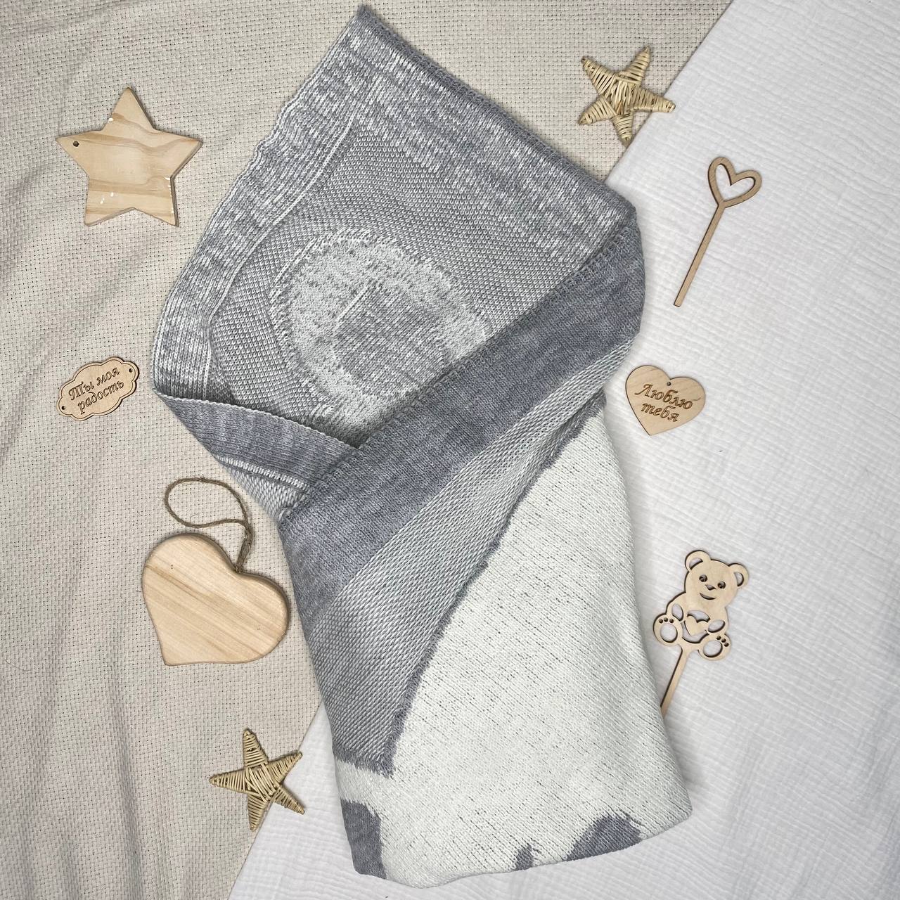 ПВ-34 Плед для малышей "Мишутка" . Вязаный двусторонний плед, размер 90х90 (+/-5) см.