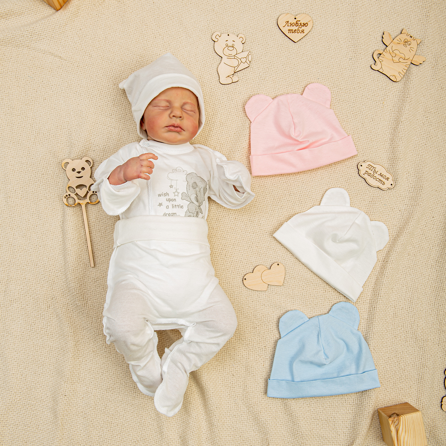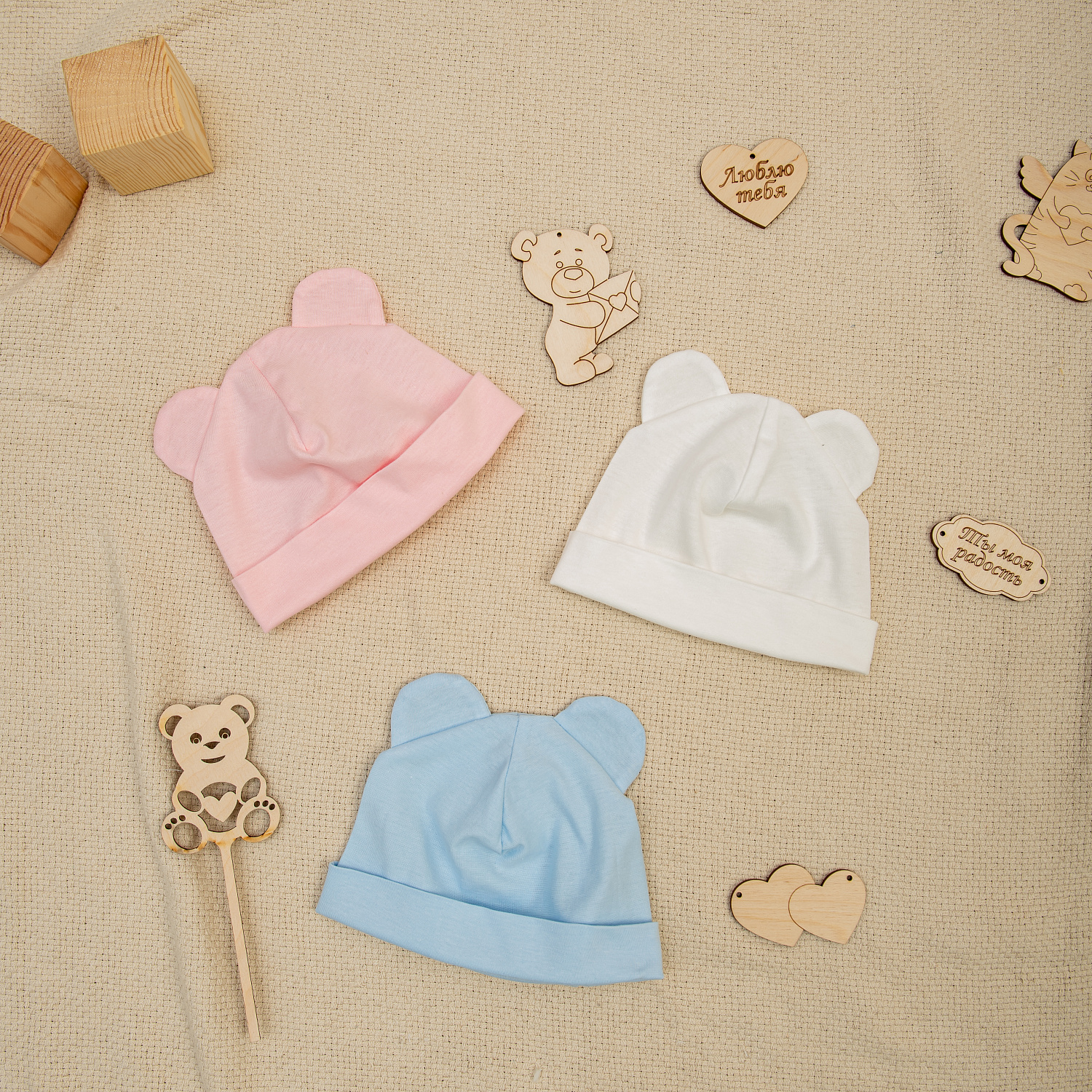 Б-275 Шапочка с отворотом для новорожденных с ушками мишки.