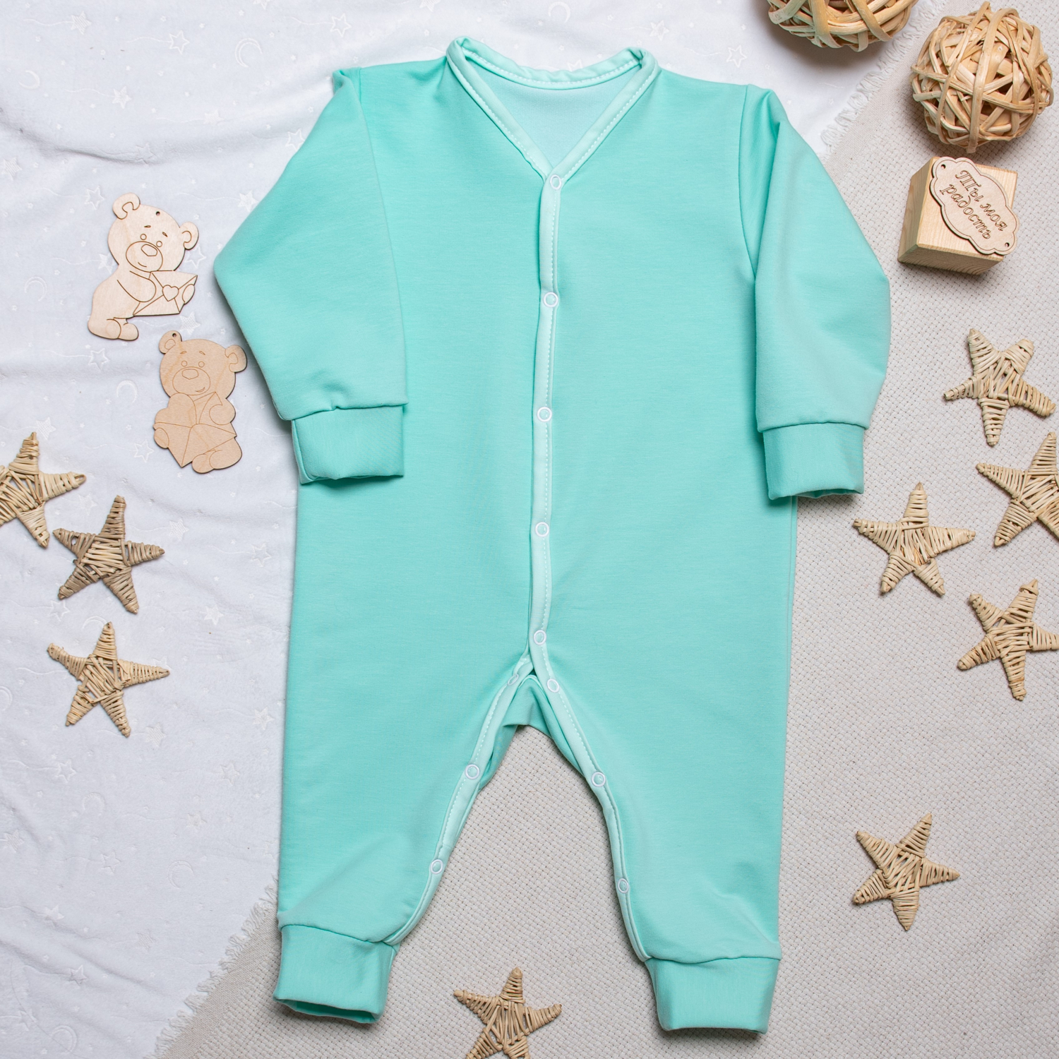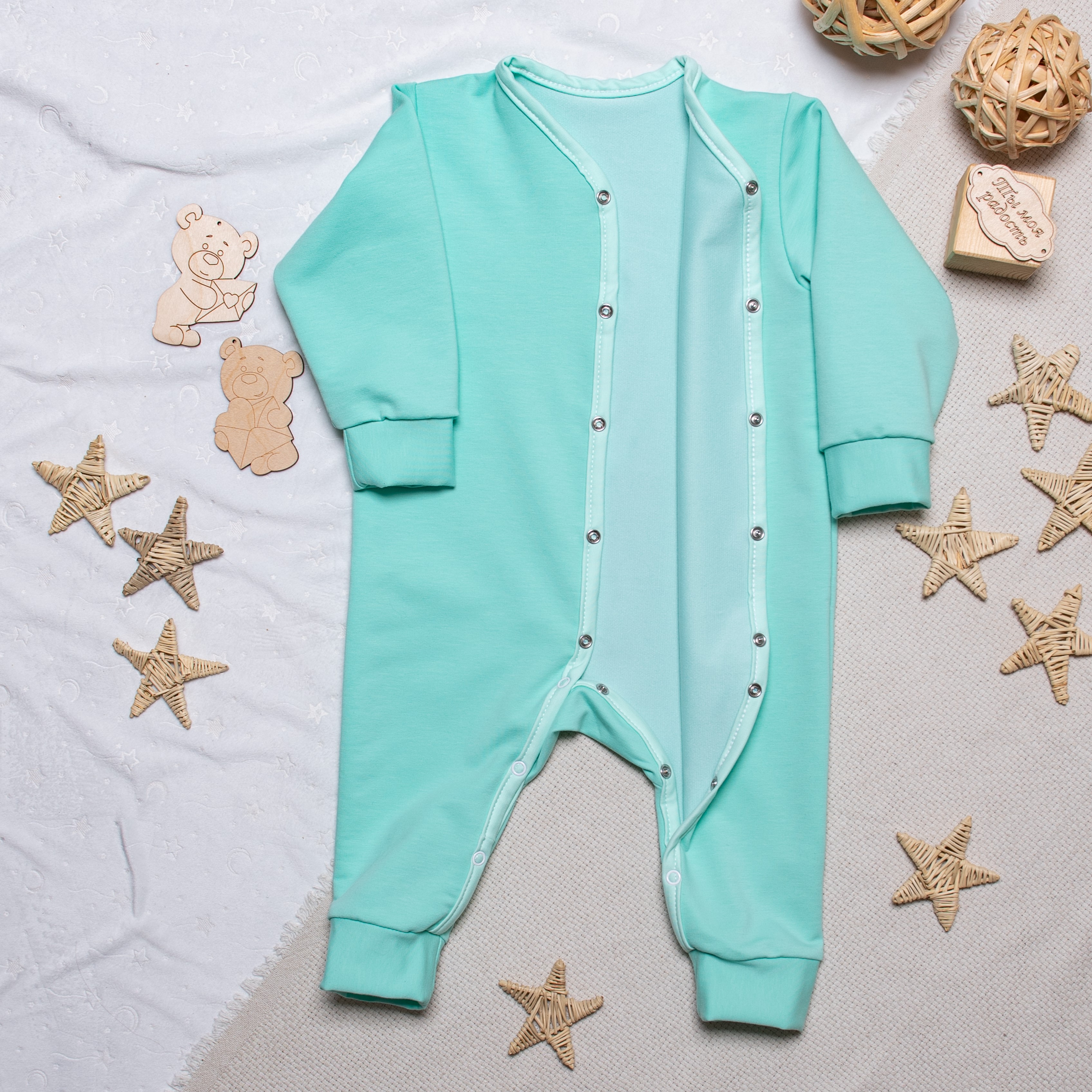 арт. М-493 Комбинезон на кнопках с манжетами, ткань футер 2-х нитка, р-ры 68-44, 74-48, 80-52, 86-56, цвета: серый, мятный, персик, бежевый