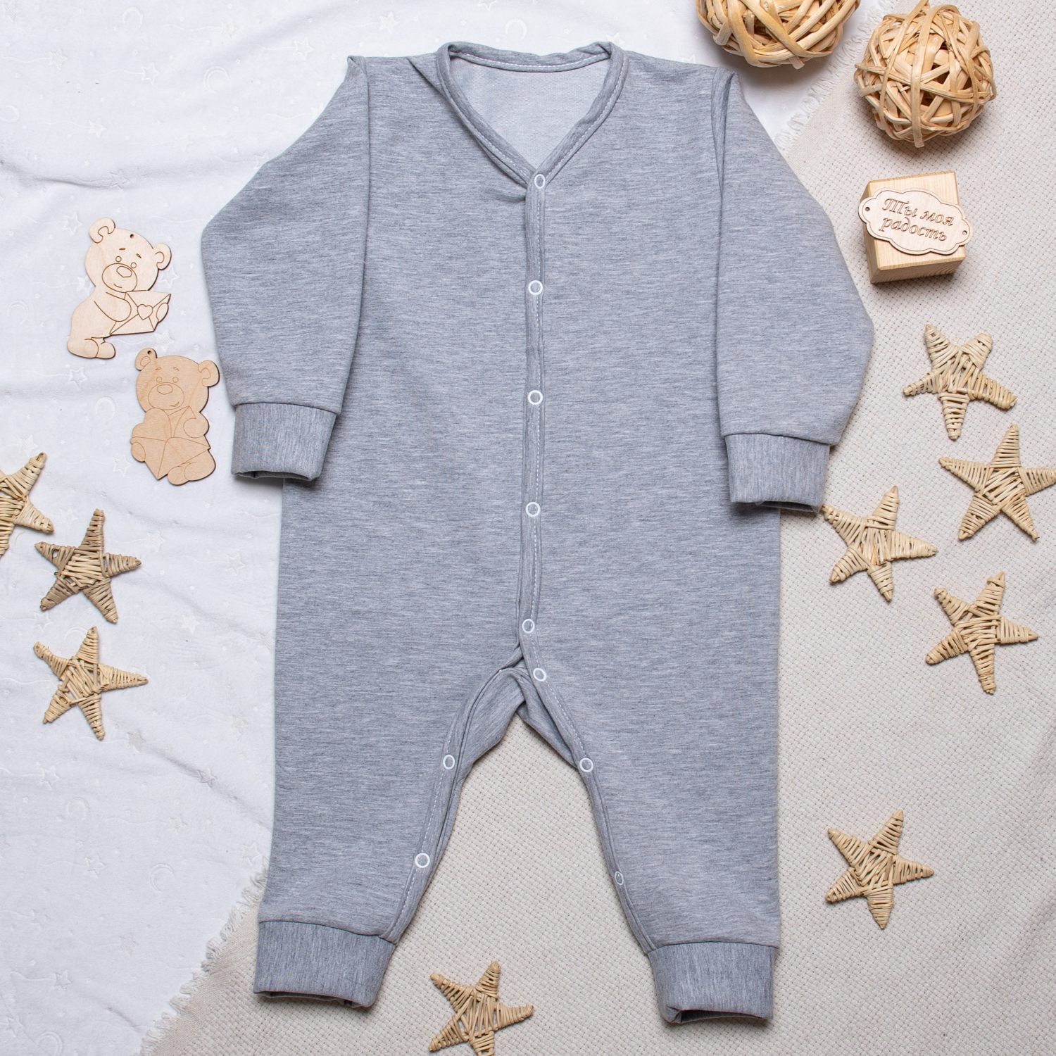 арт. М-493 Комбинезон на кнопках с манжетами, ткань футер 2-х нитка, р-ры 68-44, 74-48, 80-52, 86-56, цвета: серый, мятный, персик, бежевый