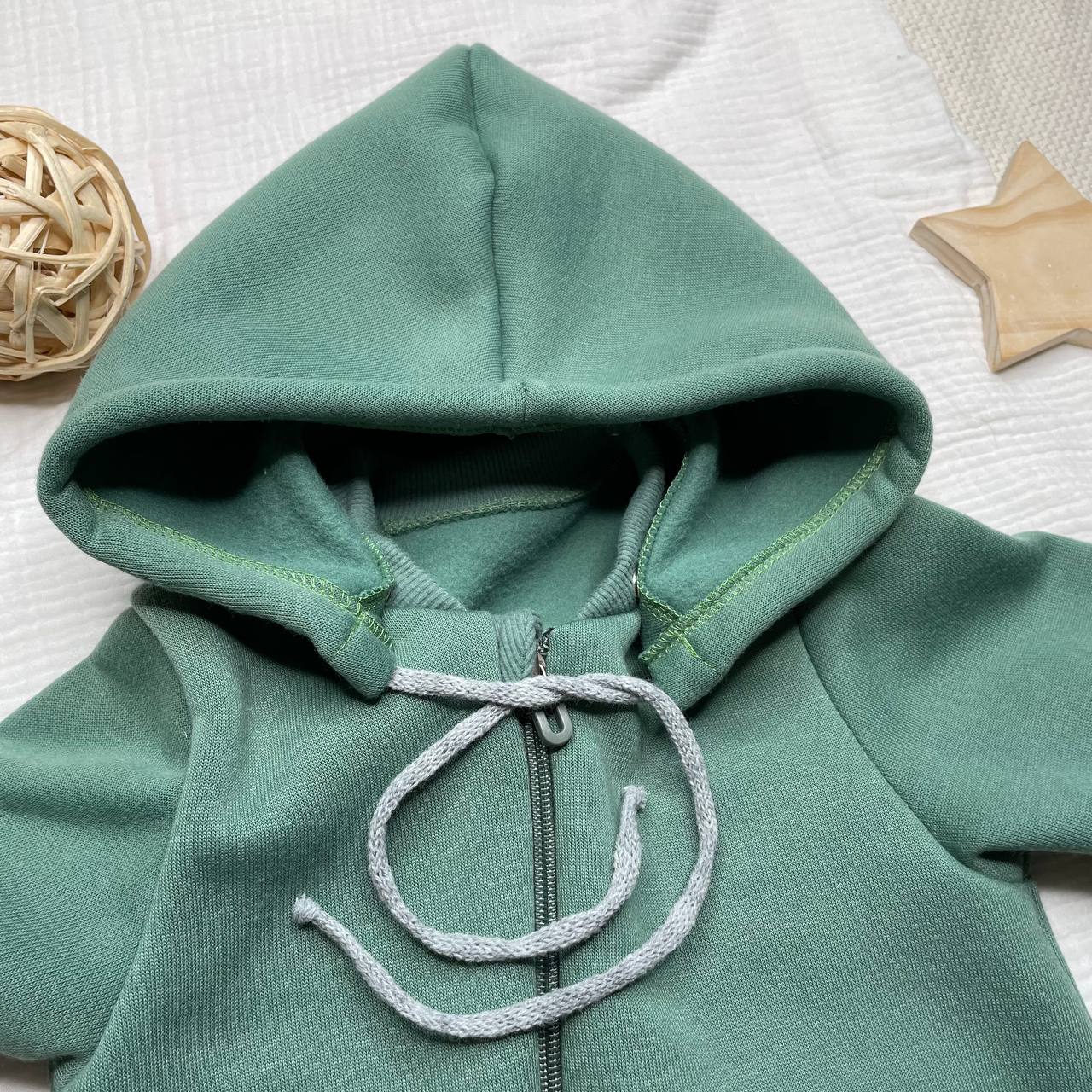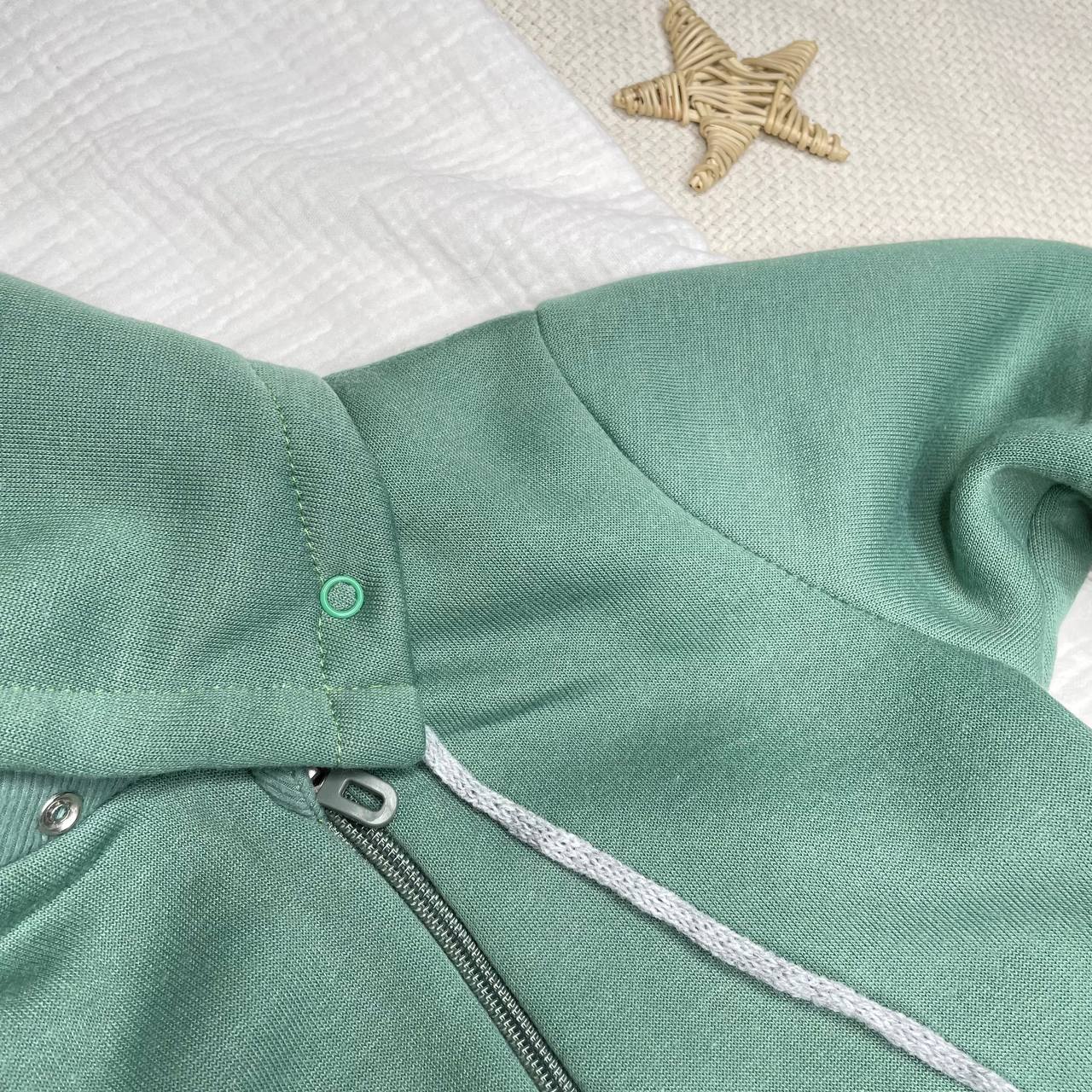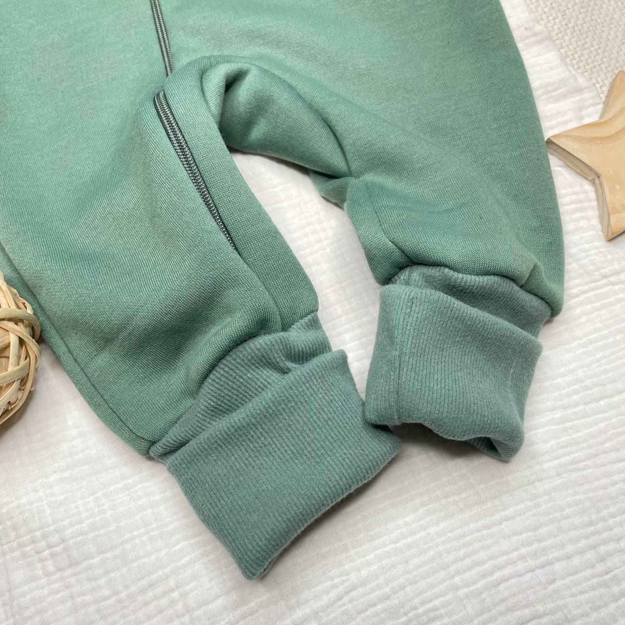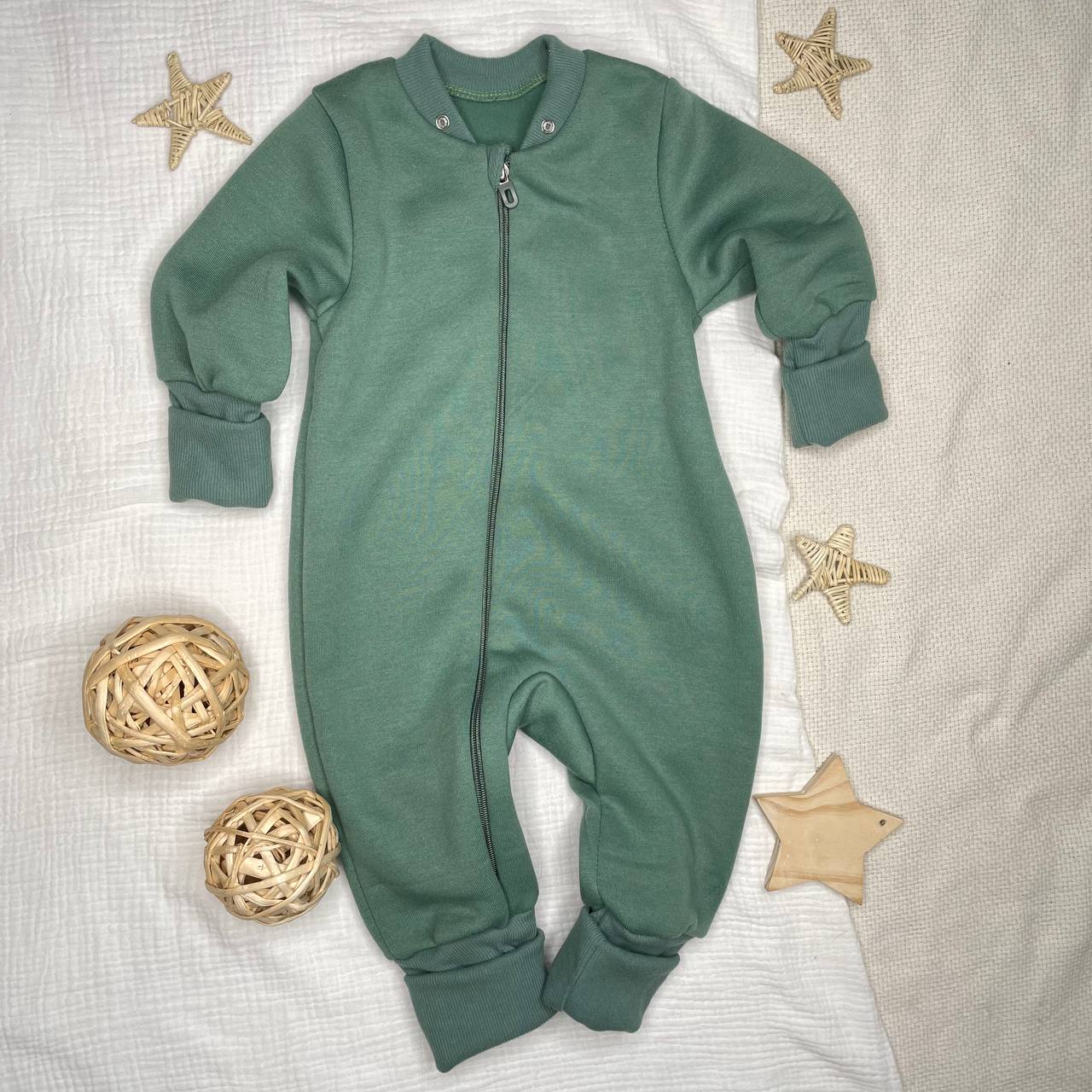 Комбинезон из футера, на молнии, с отстёгивающимся капюшоном. Растущие манжеты. Приятный цвет
