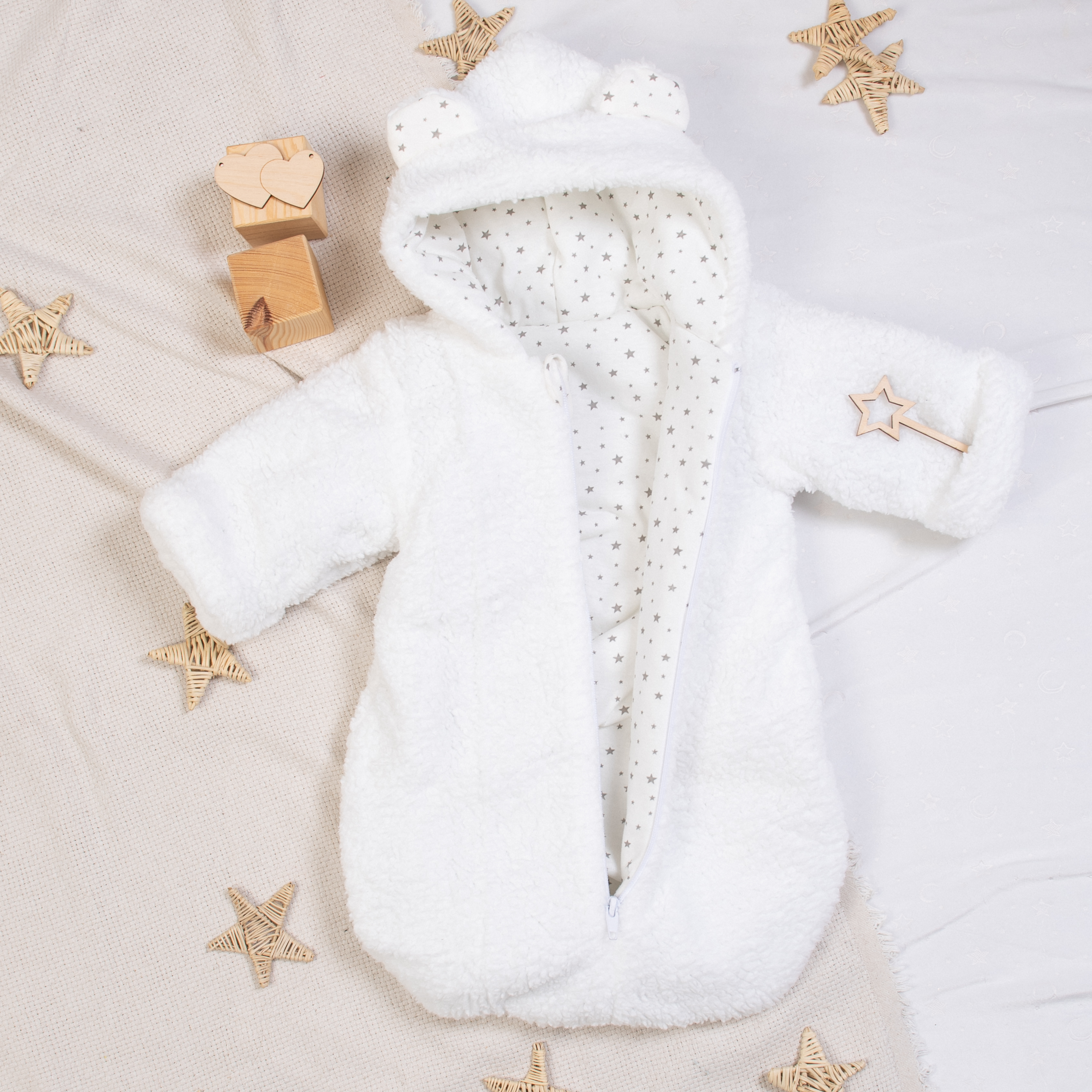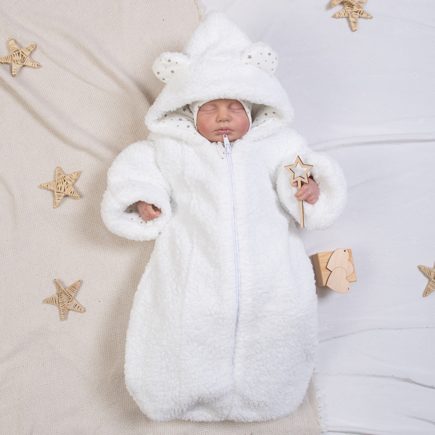 Конверт на молнии для удобства одевания, внутри хлопок трикотажный в мелкую звездочку.