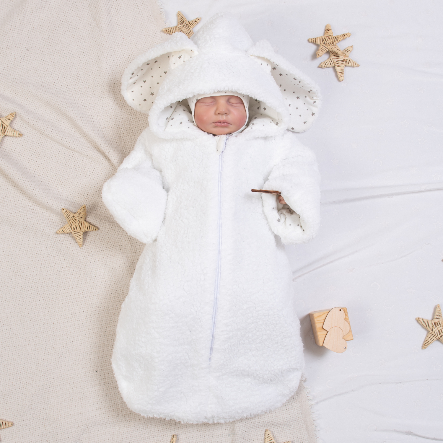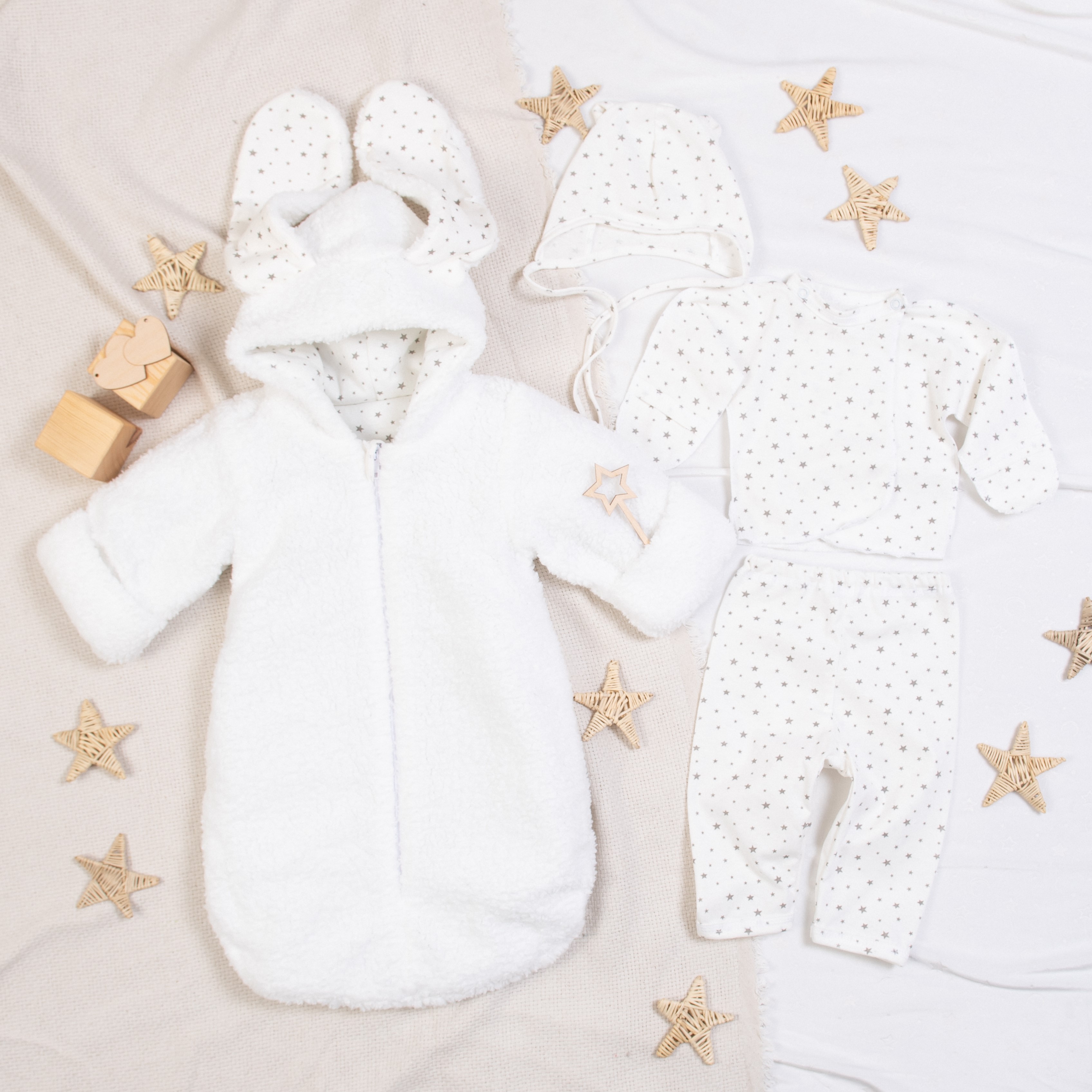 Конверт на молнии для удобства одевания, внутри хлопок трикотажный в мелкую звездочку.