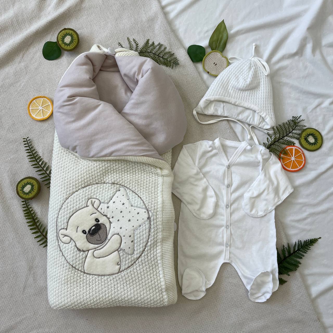 Комплект на выписку из вязанного полотна, внутри трикотажный хлопок,