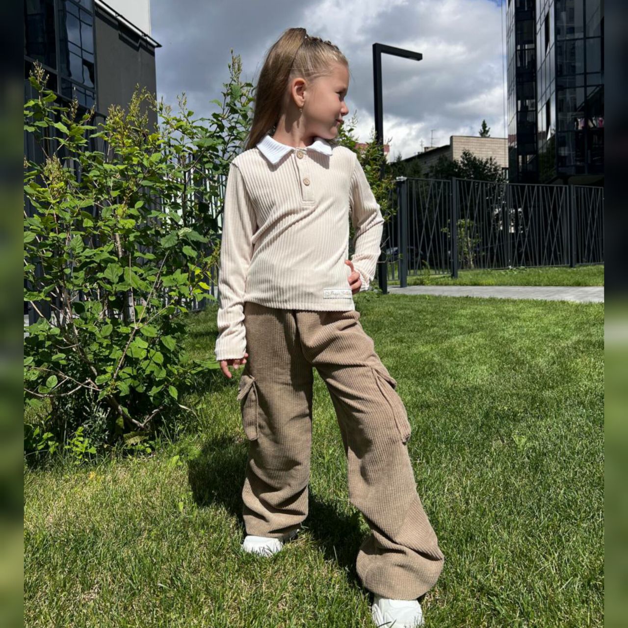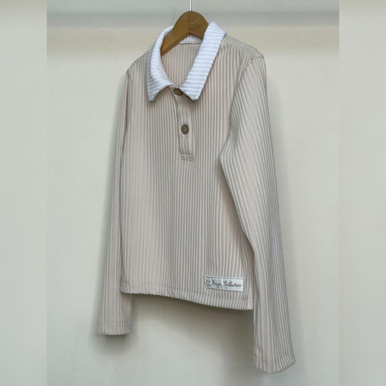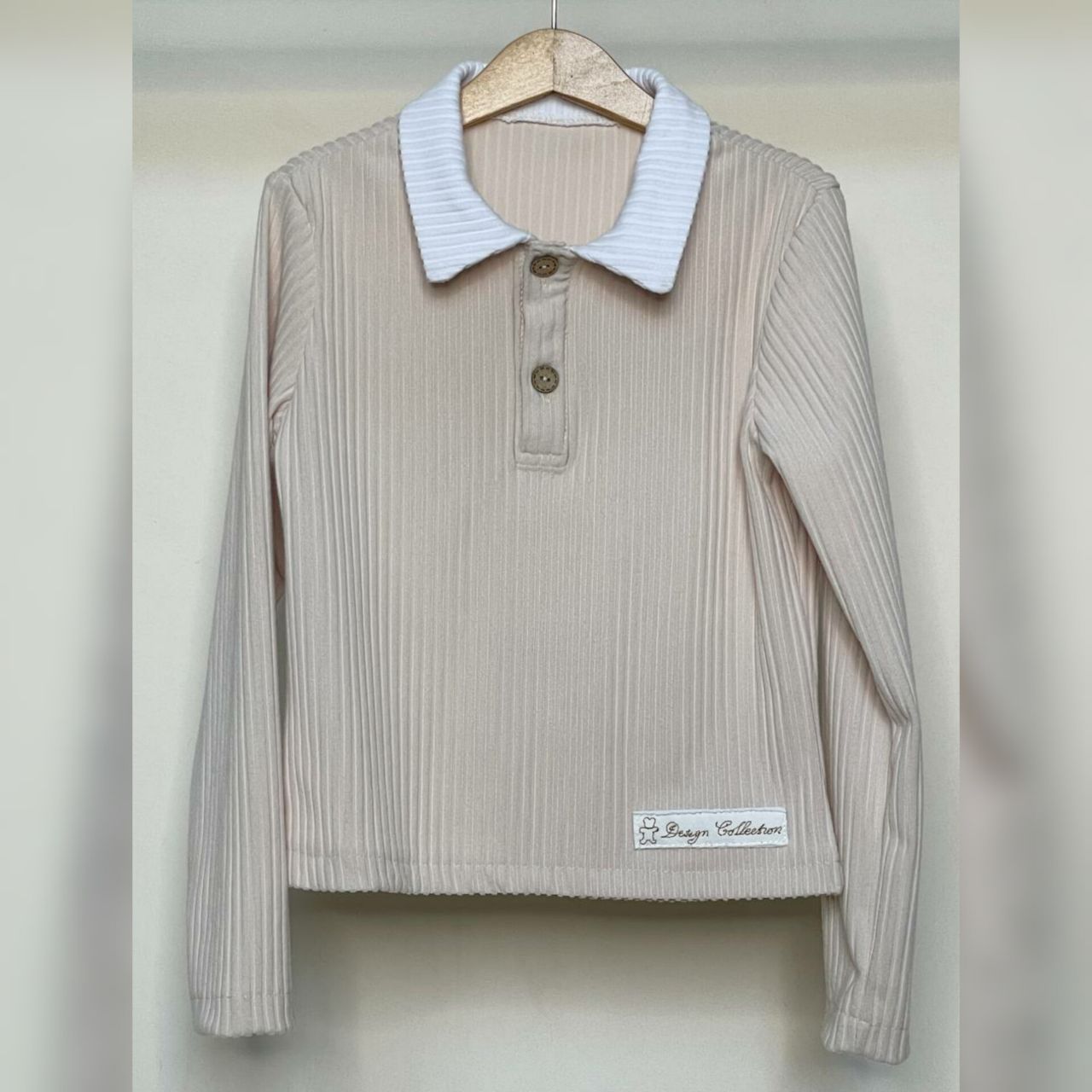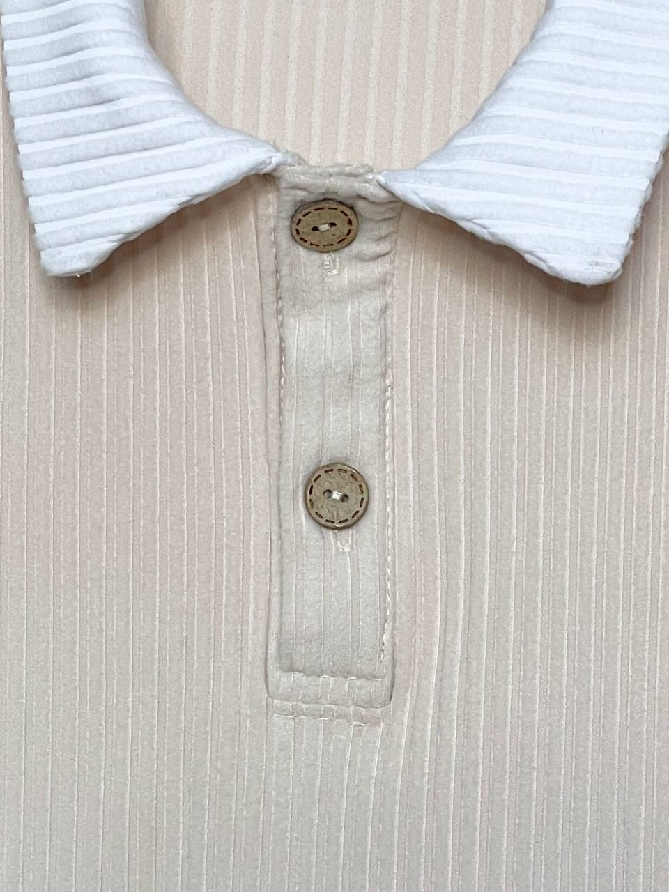 Блузка-поло выполнена из приятной ткани лапша кашемир с широким рубчиком