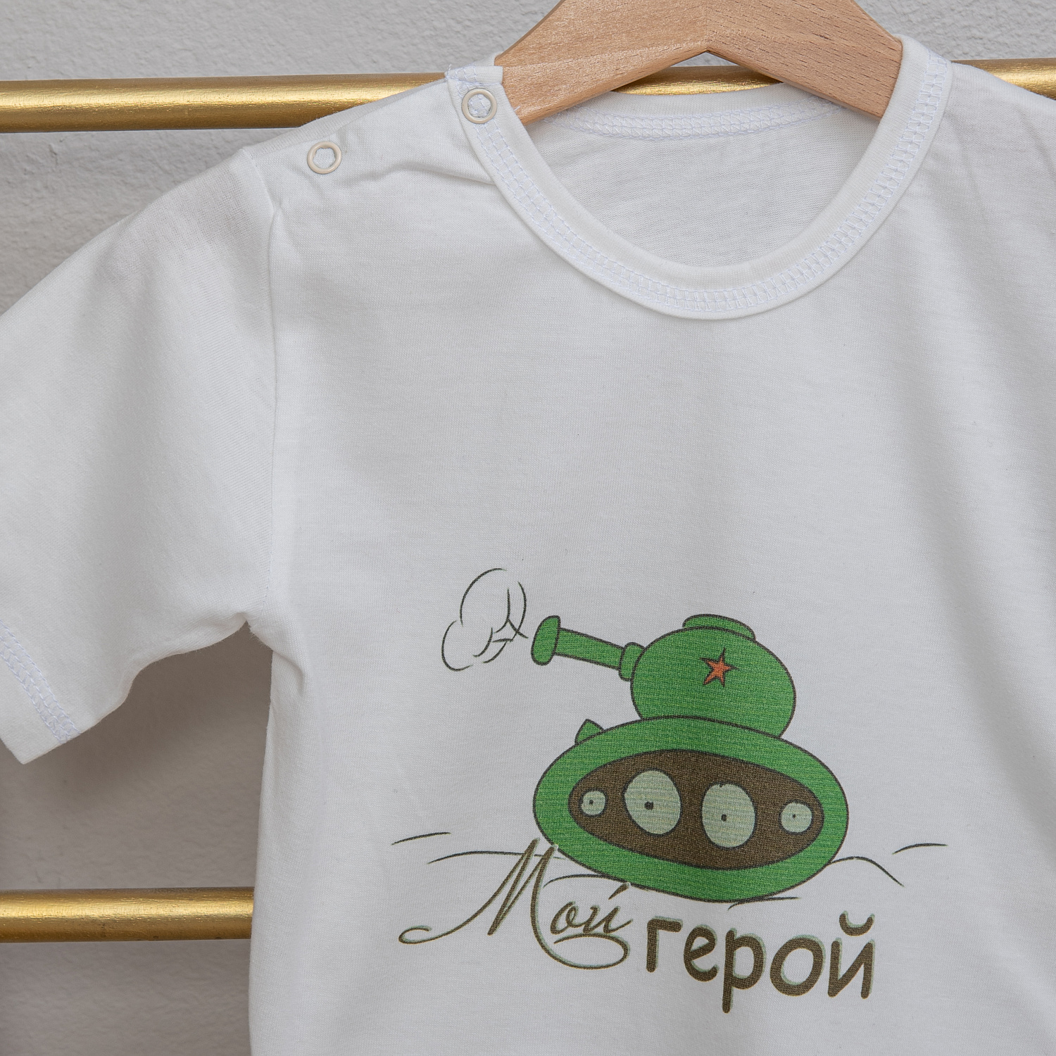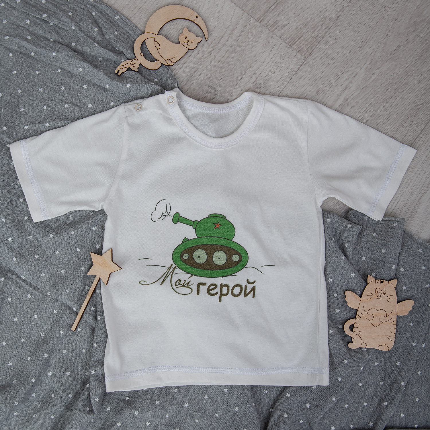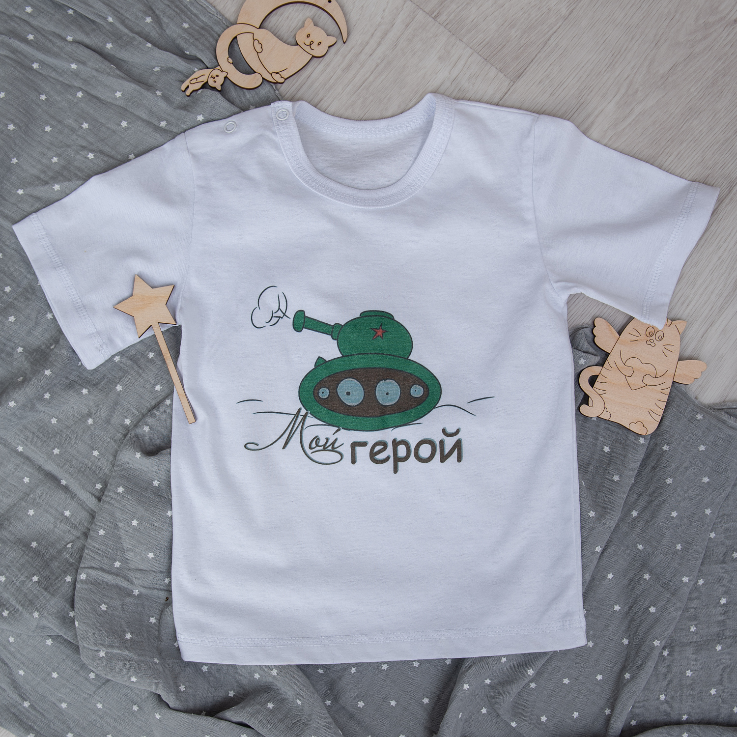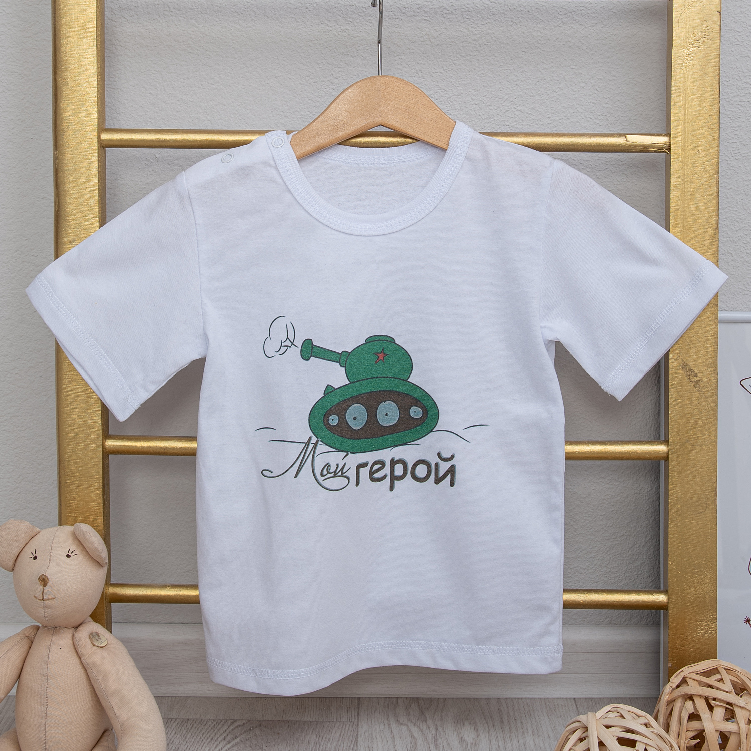 арт.Ф-161 Футболка с праздничным принтом "Мой герой" , ткань кулирка белая, молочная хлопок 100%, р-ры 48-74, 52-80, 56-86, 60-92.