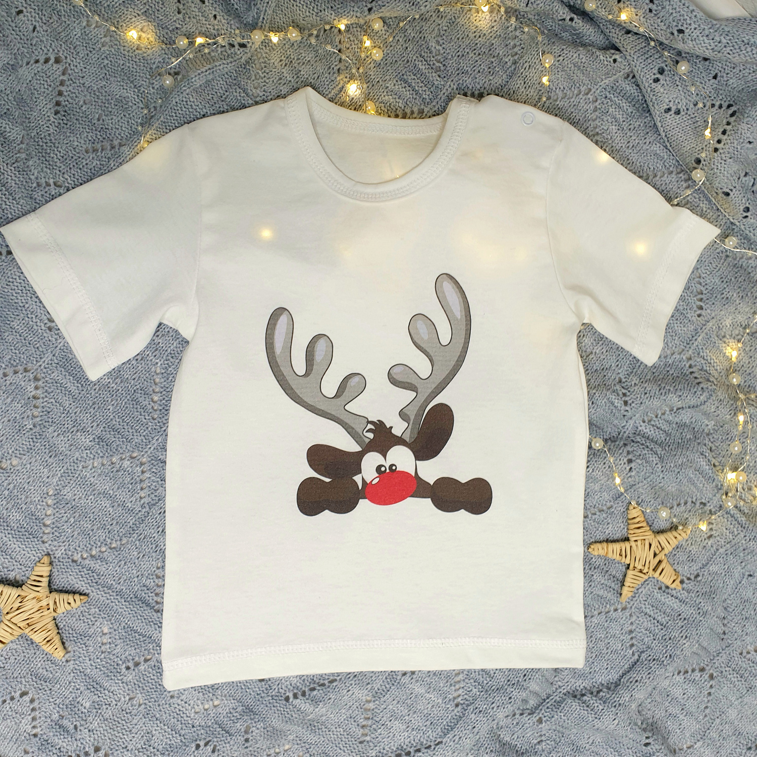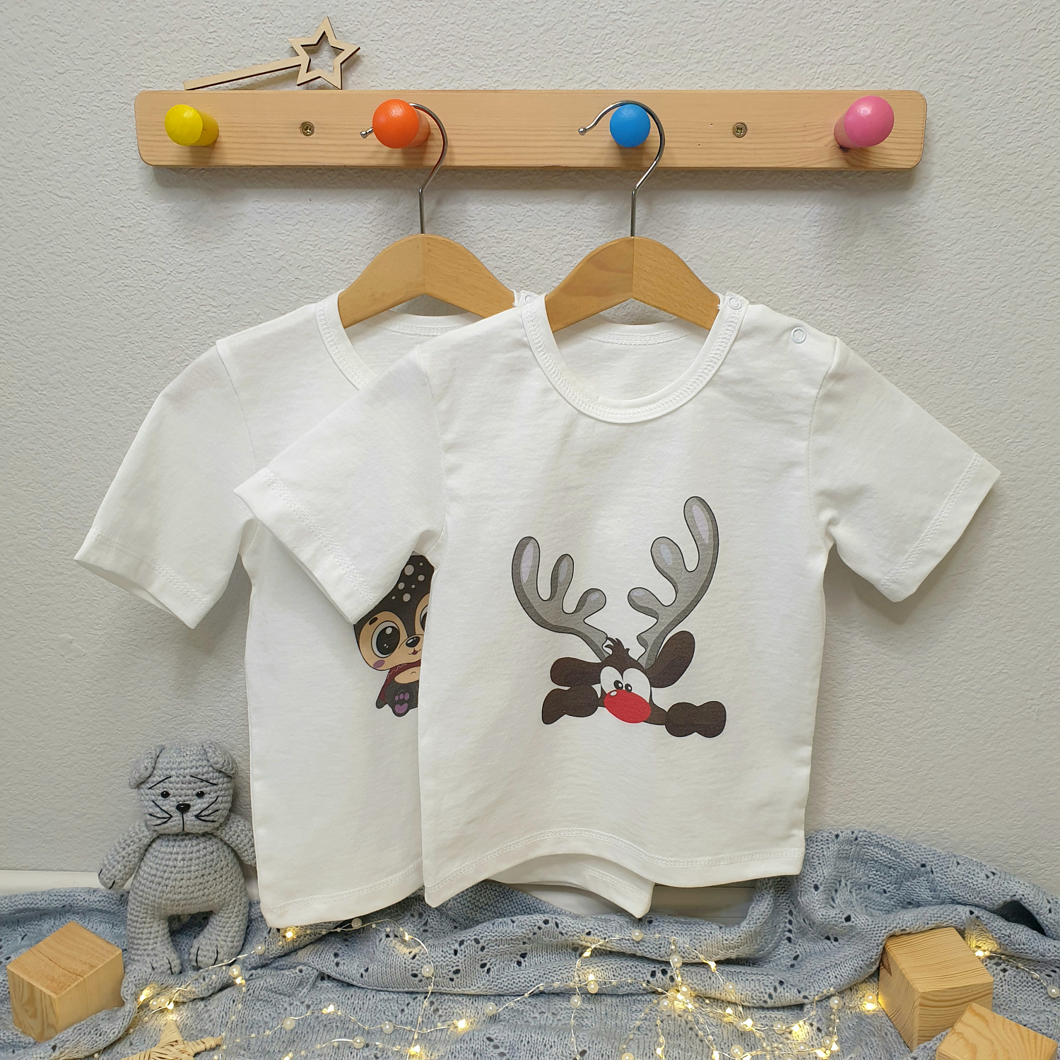Светлая кулирка и милый новогодний олененок - идеальное сочетание для праздника.