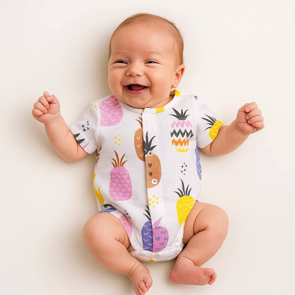 Д-33 Легкий летний боди из модного муслина с набивным рисунком Ананасы.