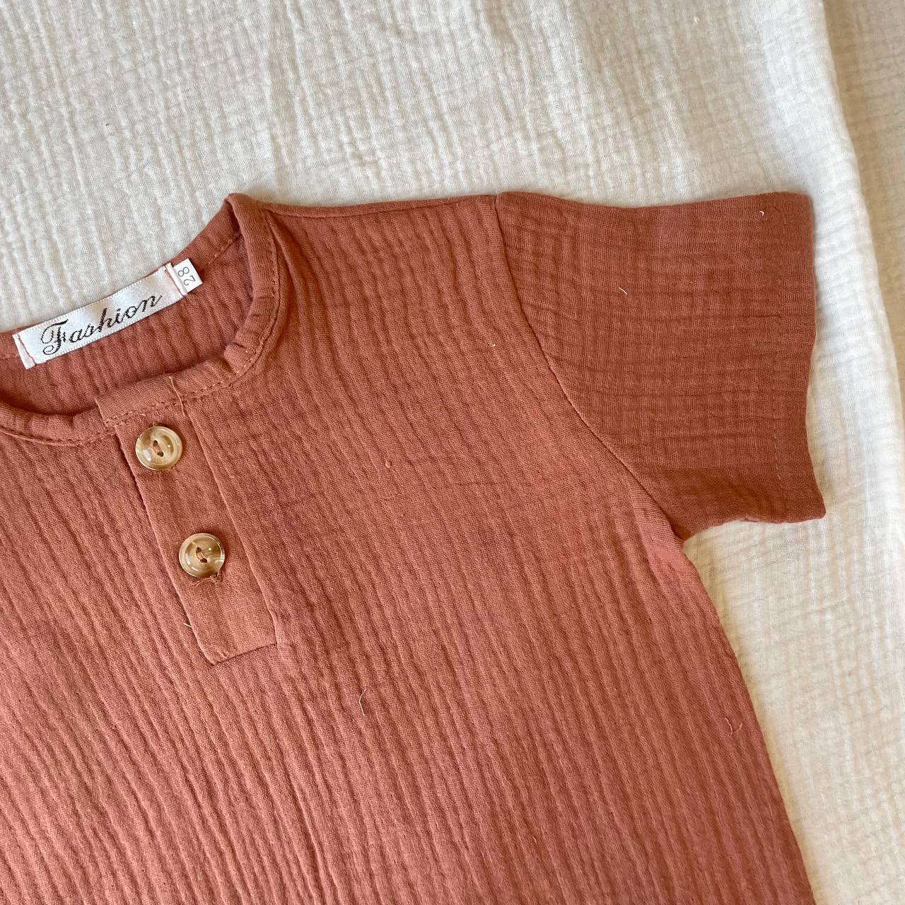 Костюм детский муслиновый с шортами для мальчиков создан из качественного муслина, который является дышащей тканью и не нагревается на солнце, что позволяет чувствовать себя комфортно в жаркую погоду.