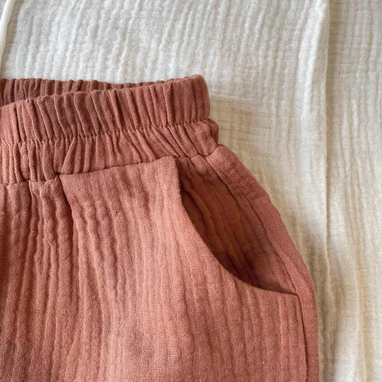 Стирать лучше или вручную, или на деликатном режиме без отжима при температуре 30оС. Не использовать хлорсодержащие средства и не сыпать порошок непосредственно на изделие. От глажки либо отказаться вовсе, либо пройтись паром. Сушить на горизонтальной поверхности. Костюм с шортами из муслина – это идеальная детская одежда на лето, которая подойдет как для дома, так и для прогулок на природе или на пляже.